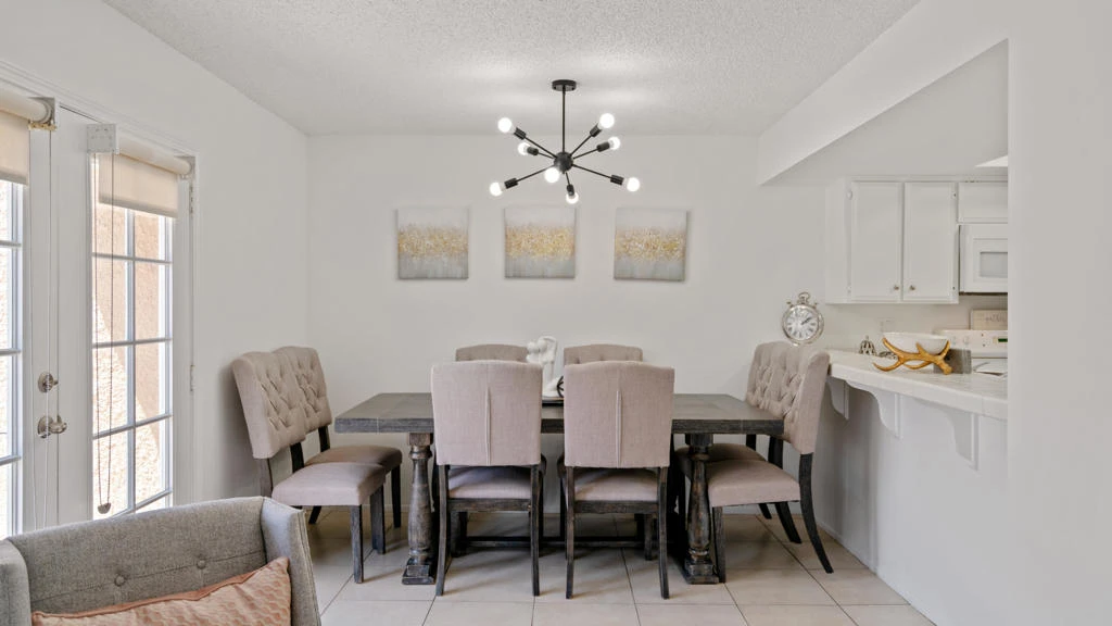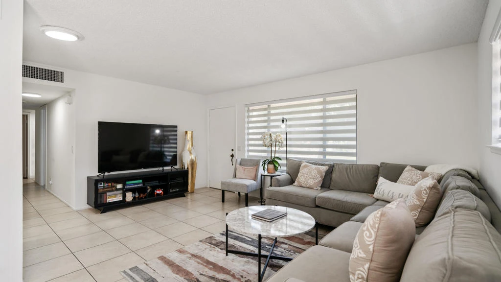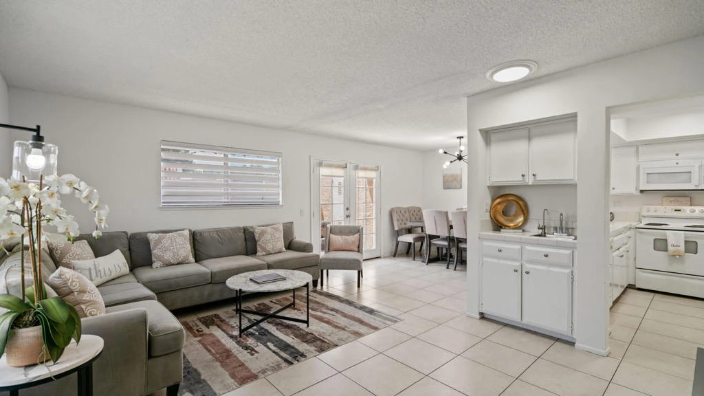 This charming condominium is located in a picturesque gated community. Features three bedrooms and two bathrooms. The living room displays a gorgeous view of the surrounding mountains. This end unit has green belts and is a perfect space for quiet, comfortable living. Just steps away from the community pool. It also offers an enclosed private patio with access to two assigned parking spaces. Remodeled master bathrooms with dual sinks and a shower. The condo is being offered furnished, including a refrigerator, washer, and dryer. The community holds many possibilities in terms of fun activities. It provides multiple pools with spas and tennis courts for the active person. For those who prefer more luxurious options, this condo is near the restaurants, stores, and a movie theater in The River outdoor mall. This is the perfect place to call home!