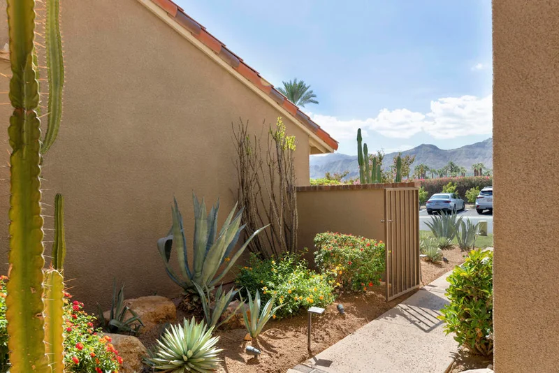 Experience desert living at its best at 38 Tennis Club Drive, in the sought-after Rancho Mirage Racquet Club. Featuring the community's largest floorplan, boasting over 2,300 square feet, this rarely available, beautifully updated home offers three bedrooms and three full bathrooms, including two huge en-suites and a third bedroom with full bath downstairs. Throughout, enjoy serene views of the lake, waterfall, and surrounding mountains. Inside, soaring ceilings, fresh paint, and new flooring create a bright, inviting atmosphere. The living room boasts a gorgeous, tiled fireplace and stunning lake and waterfall views, while the modern kitchen offers stainless steel appliances, granite countertops, and a sunny breakfast room. Adjacent to the dining area, a wet bar with sink and cabinetry makes entertaining effortless. Panoramic mountain vistas can be seen from the front of the home and one of the two oversized en-suite bedrooms, while multiple patios provide ideal spots for relaxing or dining al fresco. An abundance of closet space is a welcome feature. A newer HVAC system ensures comfort year-round, and a private two-car garage plus driveway parking add convenience and security. Residents of this gated enclave of just 95 homes enjoy five pools, five spas, tennis and pickleball courts, a fitness center, clubhouse, putting green, and beautifully landscaped lakes, waterfalls, and streams. Perfectly situated near shopping, dining, golf, and hiking, this home is ideal as a full-time residence, vacation retreat, or investment opportunity. Schedule your private tour today and discover the exceptional lifestyle at 38 Tennis Club Drive!
