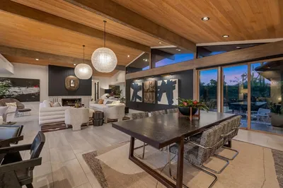 ***Open House this Saturday 3/21 from 10am - 12pm and Sunday 3/22 from 12pm - 2pm***Experience refined desert living in this exceptional mid-century inspired residence, a true expression of the iconic desert aesthetic. Ideally located within the prestigious Thunderbird Country Club, 40225 Sand Dune is perfectly positioned along the 13th hole with panoramic mountain, lake and golf course views.Architecturally striking, the residence features vaulted ceilings and dramatic walls of glass that flood the interiors with natural light while seamlessly blending indoor and outdoor living. The beautifully curated living room is both sophisticated and inviting, complete with a stylish sunken bar--ideal for effortless entertaining.Featuring four spacious bedrooms and four bathrooms, the thoughtfully designed layout offers ideal separation, including three en-suite guest rooms and a private primary retreat. The primary suite serves as a true sanctuary, showcasing picturesque views of the lush backyard, rolling fairways, serene lake, and iconic desert mountains beyond.Step outside to a resort-style backyard featuring an expansive pool and spa, along with multiple seating areas perfectly positioned to relax, entertain, and take in the breathtaking scenery.A rare opportunity to own a truly remarkable home in one of Rancho Mirage's most prestigious communities.