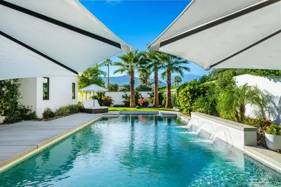 Designed by Lance O'Donnell, AIA, of O2 Architecture, this architecturally significant residence is a refined modern desert compound set against the mountains of Rancho Mirage. Featured across multiple architectural and design publications, the home carries a quiet pedigree expressed through thoughtful scale, light, and proportion.Spanning approximately 5,119 square feet on a generous 0.7-acre lot, the estate is composed of three separate structures, creating a private, compound-like setting ideal for hosting, multigenerational living, or guests who value independence and privacy. The flexible layout offers seven bedrooms and seven bathrooms, allowing the home to adapt effortlessly to both everyday living and large-scale entertaining.Architectural details define the experience throughout. A striking floating ceiling introduces a sense of volume and lightness, while walls of glass and intentional orientation invite abundant natural light, blurring the line between indoors and out. The result is an atmosphere that feels open, calm, and deeply connected to its desert surroundings.Resort-level amenities elevate the lifestyle, including a 25m lap pool designed for both fitness and leisure, additional pools framed by new decking, and outdoor living spaces enhanced by misters for warm desert days. Indoors, a state-of-the-art private theater room offers a cinematic retreat, complemented by a whole-home sound system and a comprehensive home security system for comfort and peace of mind. A dedicated sauna completes the experience, adding a restorative layer to this desert sanctuary.Set within a highly desirable enclave of Rancho Mirage, the property enjoys proximity to world-class dining, golf, and entertainment, while maintaining the tranquility of a mountainside desert oasis, offering a rare balance of seclusion, views, and architectural presence.