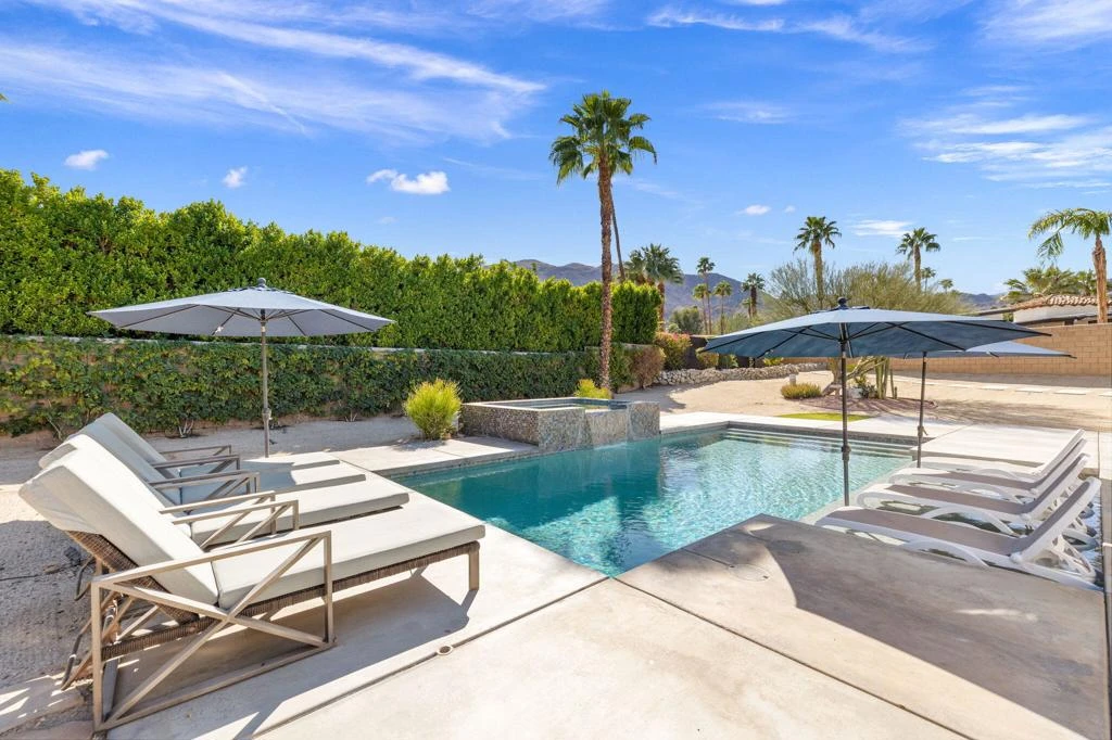 PRICED to SELL. Magnesia Falls Cove is a hidden gem in the heart of Rancho Mirage. No HOA hassles! This designer desert home has been a great family retreat and occasional rental. FULLY FURNISHED and ready for the season, furniture, amazing art and accessories included in the price! 4 bedrooms and 3 baths in 2,580 square feet on an oversized lot. 2 car garage. Great open kitchen for cooking and entertaining, LARGE living room, dining room and den/media room. Quiet and private PRIMARY SUITE with giant shower and massive closet, outdoor tub & shower as a fun bonus area. AND 3 additional bedrooms! UPDATED resort pool with Pentair equipment package, pebble finish, tanning shelf, umbrellas, raised spa with waterfall. NO work to be done, just arrive, take in the mountain views and RELAX!2 minutes to ''The River'' shopping and dining, 10 minutes to premier shopping and dining on EL Paseo Drive. Surrounded by hiking, golf and tennis opportunities. NOTE: INSTANT gratification found HERE and a quick, clean escrow is available.