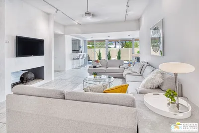 PRICE REDUCED and BRAND NEW FULL HVAC SYSTEM FOR YEAR-ROUND COMFORT: New A/C, New Furnace and all new lines, just installed March 21st! Experience resort-style living in this beautifully updated condo located within the prestigious Mission Hills Country Club in Rancho Mirage. This model has been reconfigured with an open floor plan, removing the fireplace which originally separates the living and kitchen spaces. Now with a much more modern-style open floor plan, the natural lighting fills the home, and the amazing outdoor views can be seen throughout the home. Featuring exposed-beam vaulted ceilings and tile flooring that is consistent from the front patio, rear patio and the interior. A bright, airy atmosphere with effortless sophistication. Perfect for entertaining, the spacious living area includes a convenient wet bar and expansive sliders that open to both front and rear patios, creating seamless indoor-outdoor flow. Enjoy unobstructed views of the San Jacinto mountains from the front patio, and tranquil lakefront views from the rear patio, an everyday backdrop that feels like a getaway. Additional highlights include cable & internet service, an oversized 2-car garage and storage room, golf cart stall, and access to an exclusive community featuring 7 sparkling pools and spas for relaxation and recreation. Ideally situated close to shopping, dining, and outdoor activities, this home delivers luxury, comfort, and convenience in one exceptional package.