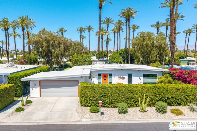Rare opportunity to own your own piece of history. This meticulously restored 1958 iconic architectural home, designed by William Krisel, offers the perfect blend of Mid Century history coupled with modern elegance. The large open great room features a grand classic fireplace. The vibrant gourmet kitchen offers high end chef's appliances as well as large peninsula seating and a stylish work nook, all open and flowing to the dining area. This home is filled with natural light through the large windows all around. Additionally, there are two large primary suites, both en suite with full baths. The powder room off the great room is a wonderful addition for parties and get togethers. Hang out on the gorgeous patio outdoor living area, surrounded by lush landscape and citrus trees, ideal for evening outdoor dining. The front yard is privately secluded with its own hedge, landscaped with plush astro turf, perfectly inviting for hanging out with family, friends and pets. A two car garage included to house pool toys, bikes, and your dream sports car. Tamarisk Ranchos 1958 by William Krisel is a resort-style community featuring 16 homes around the central pool area, with illustrious views of the San Jacinto mountains. This architectural historical home has been prominently featured on the Palm Springs Modernism Tour, and also carries it's own historical designation, allowing the owner to benefit from the Mills Act. Nestled in Rancho Mirage, the Playground of the Presidents, on Fee land (you own the land), within close proximity to world class shopping, dining, golf, hiking and culture