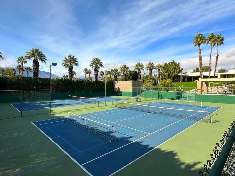 Fabulous one level 4 bedroom, 4 bathroom located in the highly desirable Tamarisk area in Rancho Mirage, California. This is like having your own private pool & spa on a mini estate because there are only 7 homes in this luxury home enclave. 2 beautiful blue tennis courts. Great room has soaring 16ft ceilings and a wall of glass which boasts breathtaking panoramic views. This celebrity chef's kitchen offers professional 36' cooktop with Italian burners and two 36' French door refrigerators. The spacious main bedroom suite has large walk-in closet plus wardrobe closet. Bedrooms are ensuite. You will have privacy in a convenient location in the heart of Rancho Mirage between the highly sought after Tamarisk area and popular Mission Hills Country Club - yes - drive your golf cart across the street to Mission Hills Country Club if you wish. Also minutes from other destination desert valley attractions and highly rated Eisenhower medical facilities. You will have exceptional panoramic southern mountain views from the time you enter the front courtyard and also from interior living areas and from the relaxing back patio. 2-car garage attached garage with direct access. Solar panels. Smart TV's. Wireless Internet, and utilities up to $300-mo. (*Booked NOV 2025- APRIL 2026*) (*Booked Nov 2024- April 2025*)