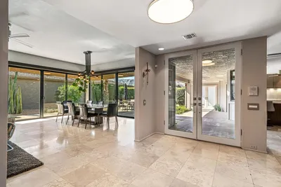 Dartmouth Drive is known for stand alone homes with St Andrews floor plans and large lots. This updated beauty gives you the luxury features you desire and complete privacy. Purchasing this furnished home gives you the opportunity to move in and start enjoying life in the sun instead of spending your time in furniture stores.Full Miele kitchen with 2-dishwashers, wall mounted espresso machine, induction cooktop, convection oven and steam oven. Custom bar for entertaining and open floor plan. With custom stone, ice maker, insta-hot faucet and lux barstools.Open plan gives light and sight lines of mountain views and Sunnylands-style desert landscaping. Leased solar, skylights and on-demand hot water all add to energy efficiency.Along with the 3-ensuite bedrooms, you'll see a lovely office space with garden featuring a fountain. Design continuity throughout. High quality, thoughtful materials. Statement fireplace and Johnathan Entler dining chandelier over 10' table invite guests to enjoy the views while the sunsets.2-car attached garage, golf cart garage and built-in storage. A mix of mid century, 70s glam, and modern furniture add to the fun spirit of desert life.Everyone loves The Springs Country Club. And it's perfect timing for you to start your fun here. We just completed a total renovation of our gorgeous Desmond Muirhead golf course. Pickleball courts have just been resurfaced & the club is more fun than ever.