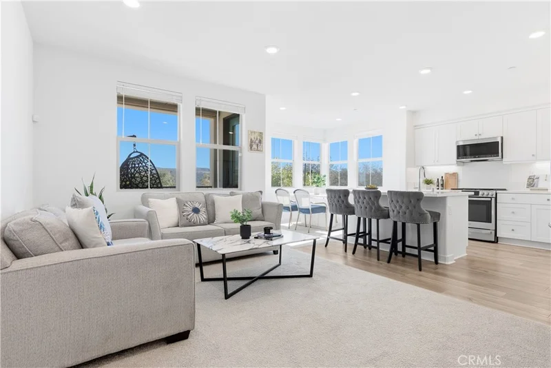 Welcome to 1500 Lasso Way #205, a beautifully upgraded corner home that radiates warmth, comfort, and effortless style in the award-winning community of Rancho Mission Viejo. Perched in one of Rancho Mission Viejo’s newest and most walkable neighborhoods, this 2-bedroom, 2-bath residence offers a bright, airy layout filled with natural light from multiple exposures and peaceful views of the surrounding hills. Step inside and you’ll immediately appreciate the inviting flow of the open-concept living space, enhanced by upgraded flooring and a soothing, light-and-bright palette that makes the home feel both modern and welcoming. The thoughtfully designed kitchen opens seamlessly to the dining area and living room, creating the perfect space for everyday living and relaxed entertaining. Just outside, the private balcony becomes your go-to spot for morning coffee, sunset breezes, or simply taking in the scenic hillside backdrop. Both bedrooms are generously sized, offering comfort and privacy, while paid solar adds energy efficiency and low-maintenance convenience. As a corner unit, this home enjoys added privacy, enhanced natural light, and an uplifting sense of openness throughout. Located just moments from RMV’s award-winning amenities, resort-style pools, fitness centers, parks, hiking trails, and vibrant community spaces, you’ll experience a lifestyle that feels both enriching and connected. Immerse yourself in the exceptional amenities of Rancho Mission Viejo, including the vibrant Ranch Camp, the state-of-the-art Ranch Cove community pool and gym, and countless recreational opportunities that define the unmatched lifestyle of this community. Exclusive to Rancho Mission Viejo residents are all amenities in the Villages of Sendero, Esencia, Rienda, and future Villages. There are community amenities for all from breath-taking resort-style pools and spas, Esencia school K-8, community farms, fitness centers, guest house, putting green, bocce ball courts, tennis and pickle ball courts, playgrounds, coffee shop, fire pits, an arcade and so much more!