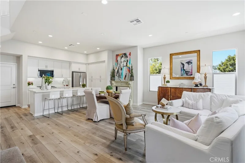Welcome to 184 Alienta Lane- a RARE OPPORTUNITY to own a beautiful two-bedroom end unit with a loft that can easily be converted into a third bedroom. This home is truly unique, featuring an extra-wide lot, added privacy with no direct neighbors across, and the only 3XA floor plan among the community’s 80 homes. Located directly across from The Hangout, a serene community gathering space featuring a babbling brook, BBQ area, and walking trails that connect to additional neighborhood amenities. Inside, the home features soaring 10-foot ceilings and abundant windows, creating a bright and spacious feel from the moment you walk through the front door. The open-concept floor plan is light and airy, with white cabinetry, lightly marbled white quartz countertops, brand new top of the line appliances and generous kitchen storage. Upstairs, the primary suite enjoys a private corner location with windows on two sides, allowing for wonderful natural light and a pleasant cross breeze. Additional features include a walk-in closet and an ensuite bathroom. The second bedroom and convenient upstairs laundry room are also located on this level. Between the bedrooms is a loft with a window, perfect as a flex space, office, or easily converted third bedroom. The secondary bathroom is located just across from the loft. Enjoy relaxing mornings, afternoons, and evenings on the charming front patio. The attached two-car garage is extra wide and features 12-foot ceilings, epoxy flooring, and built-in storage cabinets extending to the ceiling with a countertop workspace. Located near The Hangout, the Sports Park, pickleball and tennis courts, pools, the zip line park, and the neighborhood Garage amenities, this home offers access to the incredible lifestyle Rancho Mission Viejo is known for—resort-style pools, fitness centers, scenic hiking and biking trails, playgrounds, and more.