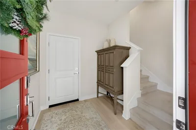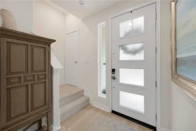 Elevated living awaits in Rancho Mission Viejo. This 2 year new, thoughtfully upgraded detached residence offers modern comfort in one of Orange County’s most desirable new communities. Welcome to 26 Crown Point, a 2023 home tucked within the intimate Esencia neighborhood of Rienda. A freshly landscaped intimate front yard with low-maintenance foliage creates a polished first impression. The oversized tandem two-car garage provides direct access and is outfitted with epoxy flooring, a whole-house water softener, dual EV chargers, a tankless water heater, and a owned seven-panel solar system, ensuring efficiency and convenience. The main living level is filled with natural light and designed for open concept living. This inviting space includes a dining area, a warm and comfortable living room, a powder room, and a balcony with community views. The designer kitchen features a huge dining island, soft-close cabinetry, a contemporary tile backsplash, stainless steel appliances, and a generous single-basin sink, all complemented by premium wood-look luxury vinyl plank flooring. Upstairs, two serene bedroom suites are accompanied by a conveniently placed laundry area, with washer, dryer, and refrigerator included. The primary retreat offers a walk-in closet, personal balcony with adjustable shade. Attached bath features a spacious walk-in shower with dual sinks. The natural light filled secondary suite enjoys its own private bath. Centrally located within Rienda, the home provides access to Rancho Mission Viejo’s exceptional amenities. Residents enjoy a golf cart-friendly lifestyle, pickleball and bocce courts, fitness centers, clubhouse bar, arcade room, neighborhood events including farmers markets, and highly rated local schools. Boulder Pond is just steps away, while shopping, dining, and beaches are all within a short drive. The 241 Toll Road is minutes away, and coastal destinations such as Old San Juan, Dana Point, and San Clemente are close at hand. Move-in ready, 26 Crown Point is a rare jewel where you can simply unpack, relax, and enjoy the elevated lifestyle of Rancho Mission Viejo.
