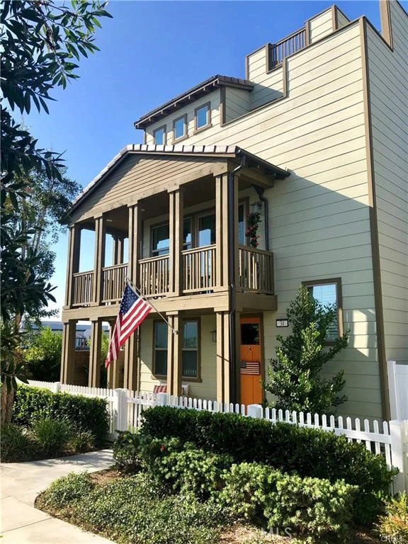 Located in the highly desirable Trellis neighborhood of Esencia. This end lot location has an upgraded home featuring the largest floor plan with 3 bedrooms and 3.5 baths. The first level includes a bedroom and full bath, ideal for guests or multi-generational living. The second level offers an open-concept great room with a spacious kitchen, dining area, and family room. The kitchen is appointed with quartz countertops, gray cabinetry, stainless steel appliances, designer backsplash, and faux wood flooring. A wraparound balcony extends the living space outdoors. The primary suite includes a walk-in closet, dual vanities, soaking tub, and separate shower. An additional bedroom, bathroom, and laundry area complete the second level. Enjoy panoramic views from the expansive rooftop deck—perfect for entertaining. Additional highlights include a wraparound front porch, white picket fence, and upgraded finishes throughout. Residents of Rancho Mission Viejo enjoy access to resort-style amenities including pools, spas, fitness centers, community farms, parks, sports courts, Esencia K–8 School, and more.