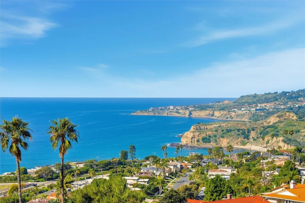 Completely reimagined and renovated down to the studs, this stunning 3-bedroom, 2½-bath VIEW home offers single level 2,209 sq. ft. of sophisticated living on an expansive almost 12,500 sq. ft. lot. An exterior wood entry door adorned by vibrant flowering bougainvillea opens to an elegant private courtyard. Striking metal and glass French entry doors with electronic key access welcome you into a bright open-concept living space enhanced by custom-engineered support beams in both the walls and attic, creating seamless flow and structural integrity. No detail has been overlooked: all-new electrical and plumbing systems, extensive foundation retrofitting and upgrades, and a new drainage system provide peace of mind for years to come. The designer kitchen is a showpiece, featuring quartz waterfall countertops, custom wood & tile flooring, a 40-bottle under-counter wine cooler, built-in wine rack and bar, large hammered steel sink, and premium Viking appliances including a five-burner range and Fisher & Paykel dual-drawer dishwasher. A dramatic floor-to-ceiling gas fireplace anchors the main living area, while blackout shades on all windows and doors create comfort and privacy. Flat-screen TV hookups are installed in the TV room, dining room, primary suite, and outdoor patio. Step outside to breathtaking VIEWS of Catalina Island, the Pacific Ocean, and Trump National Golf Club. The grounds have been thoughtfully upgraded with new pavers throughout the driveway, sidewalks, rear patio, pool deck, and courtyard. The sparkling swimming pool and hot tub feature new tile, poured concrete coping, solar heating, and a new pool water heater. Owned solar panels power the home for energy efficiency. Outdoor living is elevated with a custom PVC pergola featuring recessed lighting and two ceiling fans, complemented by five additional interior ceiling fans. Nine palm trees frame the property, creating a true resort-like atmosphere. The fully renovated garage includes new epoxy flooring, custom cabinetry and pantry, large sink, generous storage closet, and new medal garage door. Multiple metal exterior gates, six CCTV cameras with recording capability, and perimeter security lighting with automatic timers complete this meticulously upgraded property. High speed electric vehicle charger Luxury coastal living at its finest — structurally enhanced, beautifully designed, and situated on an expansive lot offering privacy, views, and exceptional indoor-outdoor living.