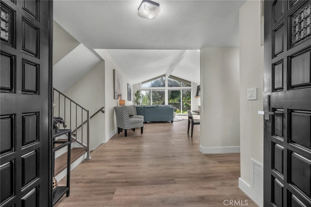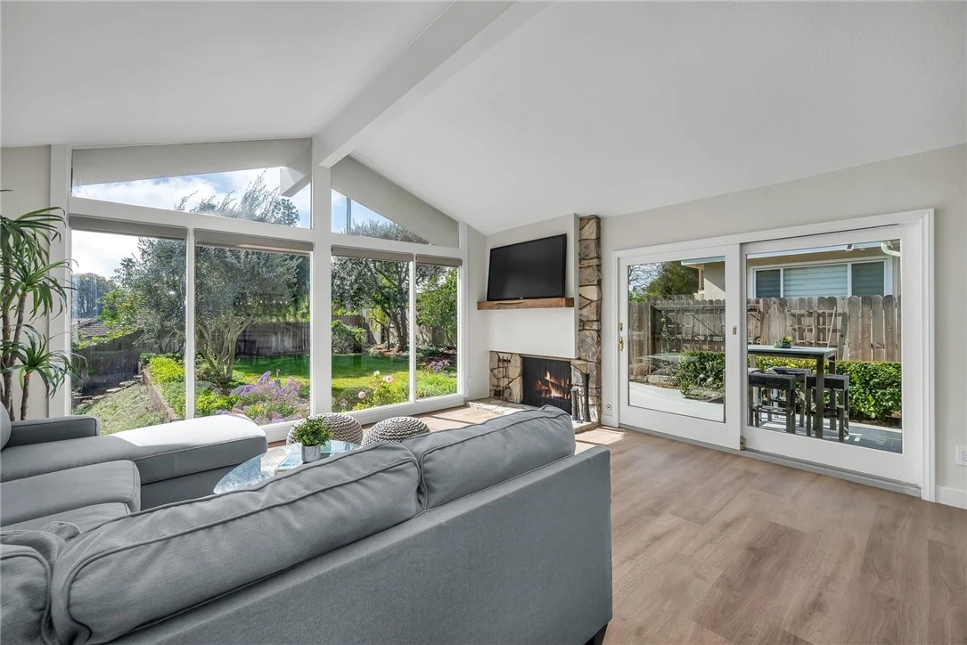 Beautifully remodeled Mesa Palos Verdes home filled with sunshine and ocean breezes, and offers 4 spacious bedrooms, 3 bathrooms, approximately 2,374 SqFt of living space on a generous 9,000 SqFt lot! This great split-level floorplan features a welcoming double-door entry with foyer, a large living room, open dining room, and a sunny kitchen with breakfast nook on the main level. Just half a flight up are three bedrooms including the primary suite, and half a flight down are the family room, bedroom, bathroom, and laundry area. The updated kitchen Has freshly painted cabinets with new hardware, new stainless steel appliances including French door refrigerator, cooktop with downdraft, dishwasher, built-in microwave, sink, faucet, garbage disposal, newer double oven, LED lighting, island seating, and a breakfast nook with sliding door to a charming patio overlooking the lush backyard and fruit trees. The expansive living room boasts cathedral ceilings, PV stone fireplace, slider to the alfresco patio, and a dramatic floor-to-ceiling wall of glass framing the backyard. The open dining room is ideally located and has a new chandelier. The huge family room downstairs offers a large glass slider to the patio and grassy yard, a white brick fireplace with bench/hearth, and recessed LED lighting, with an adjacent bedroom, remodeled bathroom, and laundry area. Upstairs, the primary suite features a generous bedroom with bay window overlooking trees and yard, plus a tastefully remodeled bathroom with white granite countertops and dual sinks; two additional light-filled bedrooms are perfect for kids or a home office. The hallway bathroom is also remodeled with white granite and tile. Located on a hilltop just minutes from Peninsula Center, Promenade Mall, Ralph’s on Hawthorne, Golden Cove Shopping Center, and scenic coastal spots. This home also enjoys access to award-winning schools including Soleado Elementary, Ridge Crest Middle (less than ½ mile), and Peninsula High. There are multiple grocery options only a few minutes away. Additional highlights include a 2-car garage with direct access, auto roll-up door, 220V for easy EV charging setup, and new steel side door. Recent upgrades feature a new Presidential lifetime roof, new interior paint, gorgeous glued-down LVP flooring with lifetime warranty, new air conditioning unit, new interior wrought iron railing, all-new LED lighting, and new electrical switches and outlets with screwless cover plates.