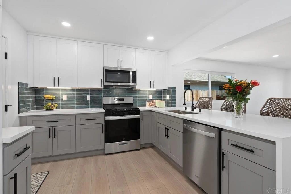 A modern oasis with this like-new home, perfectly situated in the heart of Rancho Penasquitos. This beautifully updated residence offers a harmonious blend of contemporary design making it an ideal retreat. As you approach the property, you’ll be greeted by a thoughtfully designed desert landscape that enhances its curb appeal. The low-maintenance, drought-resistant plants create an inviting atmosphere with minimal upkeep. The new double-pane windows not only elevate the aesthetic but also provide energy efficiency and sound insulation, contributing to a tranquil living environment. Upon entering, you’ll be captivated by the bright and airy layout adorned with new engineered hardwood floors throughout adding warmth and style. The spacious grand room features abundant natural light, creating an inviting backdrop for both gatherings and quiet evenings at home. The heart of this home is the stunning new kitchen, a chef’s delight. Meticulously remodeled, it boasts stainless steeel appliances, sleek new cabinetry, and gorgeous countertops that combine functionality with style. Picture yourself preparing meals in this culinary haven, complete with a generous island that serves as a breakfast bar, perfect for casual dining or entertaining friends. The open layout seamlessly connects the kitchen to the dining area and grand room making it easy to host gatherings. The home features three bedrooms, each designed to be a restful retreat allowing for flexibility whether you need a home office, a guest room, or a playroom for the kids. Each space can easily adapt to your lifestyle, making this home truly versatile. The remodeled bathrooms are nothing short of luxurious. Designed with modern fixtures, they provide a spa-like atmosphere for your daily routines featuring beautifully tiled showers and comfort for family and guests. Beyond the interiors, the upgrades continue with a new HVAC system that ensures year-round comfort. Whether it’s a warm summer day or a chilly winter evening, your home will remain a cozy sanctuary. A new roof adds peace of mind, safeguarding your home from the elements for years to come. Outside, the backyard is a delightful extension of your living space. It offers ample room for outdoor activities or simply enjoying the serene California weather. Imagine hosting summer barbecues or relaxing with a book in your own desert oasis. This outdoor area is perfect for creating lasting memories with family and friends. Living in Rancho Penasquitos means enjoying a vibrant community filled with amenities, including parks, hiking trails, and recreational facilities just minutes from your door. Excellent schools in the area make it a fantastic choice for families, providing a nurturing environment for children. Additionally, the home’s close proximity to commuter routes ensures easy access to nearby work and entertainment hubs. Welcome home to a lifestyle of elegance, convenience and warmth. Your dream home awaits!