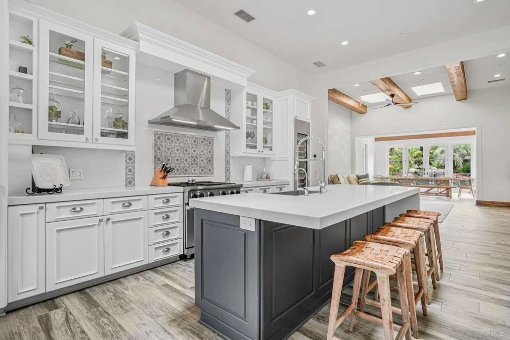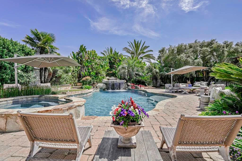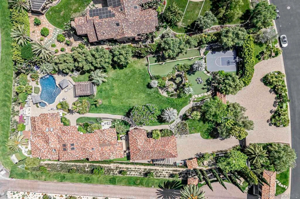 Welcome to your own private paradise nestled in the exclusive, guard-gated enclave of The River Estates; a prestigious community of just 14 luxury residences in Rancho Santa Fe. Beyond its impressive entrance, this meticulously crafted single-story estate sits on resort-style grounds, offering the ultimate Southern California lifestyle. This custom-designed 5-bed, 4-bath estate—including a detached "guest" house —seamlessly blends luxury, comfort and modern elegance. The main residence (4 bd, 3 ba) emphasizes indoor/outdoor living, with a fresh modern Tuscan vibe and stunning craftsmanship throughout. Step outside into a lush, private oasis designed for entertainment and tranquility alike. The expansive grounds feature: A resort-style pool and spa with cascading waterfall, Loggia and covered veranda for al fresco dining, Summer kitchen with built-in BBQ & authentic Italian stone pizza oven, Basketball half court, 7-hole putting green, bocce ball, horseshoe pit, and rolling green lawns, serene koi pond and outdoor fireplace, ideal for meditation or entertaining, abundant seating areas thoughtfully arranged for your enjoyment, several fountains and water elements, evoking a tranquil, resort-like feel, multiple outdoor storage options throughout the property. Surrounded by mature palms and vibrant flora, this estate offers a rare level of privacy, exclusivity, and resort-like amenities. It’s perfectly located just minutes from the Rancho Santa Fe Village, award-winning schools, equestrian facilities, shopping, dining, & freeway access.