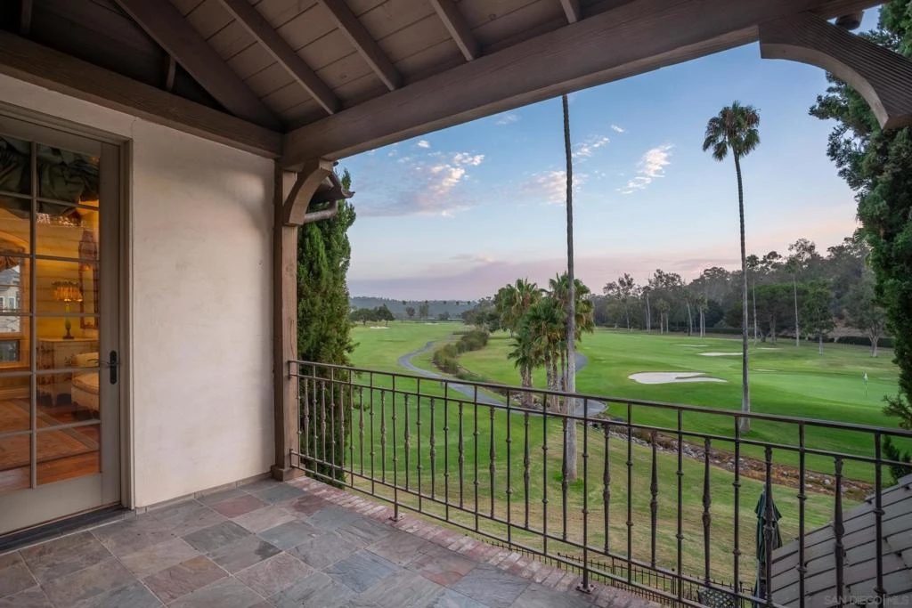 Nestled along the rolling fairways, this extraordinary residence combines timeless architecture with refined updates and sweeping golf course views. Behind its captivating, storybook façade lies a home of warmth, sophistication, and enduring quality. The chef’s kitchen is as functional as it is beautiful, showcasing handmade pewter hardware on every knob and handle. Walk-in pantry with custom cabinetry and separate butler’s pantry. The kitchen flows seamlessly into the welcoming family room and dining area, where walls of glass frame uninterrupted views of the course and greenery. Rich wood and stone flooring, vaulted wood beamed ceilings and French doors. The expansive layout offers four ensuite bedrooms, a distinguished library, and a versatile office or sitting room. Thoughtful upgrades such as a whole-home water softening system, abundant attic storage, and an epoxy-finished three-car garage further underscore the home’s craftsmanship and attention to detail. Life in Rancho Santa Fe is defined by prestige and privacy, where winding, tree-lined streets, equestrian trails, and world-class golf and tennis facilities create an unmatched sense of community. From the beloved Farmers Market and acclaimed local schools to Cars & Coffee in the Village and a charming array of dining options, the lifestyle offerings are as vibrant as they are refined—all just minutes from Del Mar’s pristine beaches and the excitement of the Del Mar Fairgrounds. Perfectly positioned between Green 5 and Tee 6, the home captures uninterrupted views and the essence of golf course living.