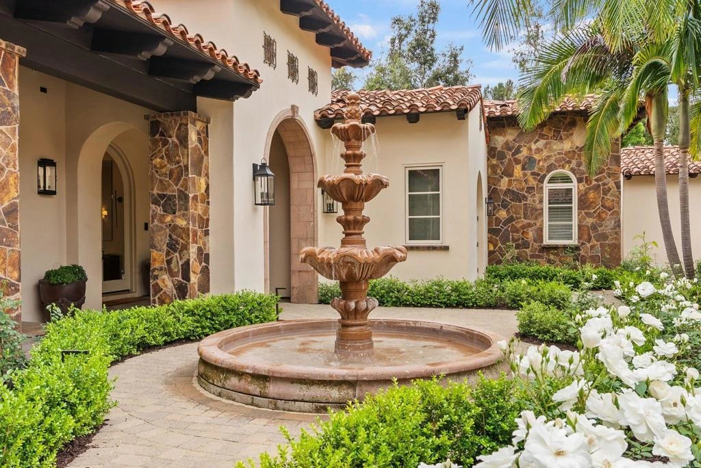 Set within the guarded gates of Fairbanks Ranch in Rancho Santa Fe, this exceptional estate offers a rare combination of scale, privacy, and thoughtful design. Privately positioned on 1.71 acres of lush, meticulously landscaped grounds, the 6,790 square foot residence embodies a timeless architectural style with a seamless blend of luxury and comfort. A grand motor court welcomes you with a three-car garage in addition to a separate two-car garage, along with a detached casita ideally suited for guests, extended family, or a private office. A charming courtyard anchored by a classic fountain creates a true sense of arrival, blending classic Rancho Santa Fe character with refined, elevated design. Originally built in 2008 and extensively renovated in 2017, the home has been updated to balance modern convenience with enduring quality. The interiors are filled with natural light and defined by soaring ceilings, custom mill work, and well-proportioned living spaces. Smart home wiring further enhances functionality while maintaining a clean and sophisticated aesthetic. The kitchen serves as the centerpiece of the home, featuring custom cabinetry, stone countertops, and an oversized island that opens to the main living areas, creating an ideal environment for both everyday living and entertaining. All bedrooms are en suite and feature spacious walk-in closets, offering both comfort and privacy. The primary suite serves as a true retreat, complete with spa-inspired amenities and serene views of the surrounding grounds. Additional guest suites and flexible living spaces provide versatility for a variety of living needs. The backyard is designed for year-round enjoyment, anchored by a saltwater pool and spa, multiple seating areas, and an outdoor entertaining pavilion. Updated exterior and landscape lighting enhance the setting into the evening, while mature landscaping provides both beauty and privacy. Located within one of Rancho Santa Fe’s most sought-after guard-gated communities, this property presents a rare opportunity to experience a refined and effortless lifestyle.