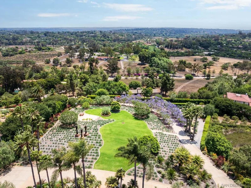 Location, style, attention to detail and masterful construction find harmony within this recently renovated/updated Santa Barbara style Rancho Santa Fe Covenant estate showcasing spectacular views. Ideally situated, on one of the highest points and desirable streets in the exclusive Covenant in Rancho Santa Fe on 3.21 beautiful, private, gated and fenced acres, with unlimited panoramic South-Western views with an peek of the Pacific ocean and stunning sunsets in addition to mountain and back country views from the rear of the residence. The gracious home exudes casual elegance and provides the ultimate venue for indoor/outdoor living and entertaining. The approximately 8,161 square foot residence encompasses five well-appointed bedrooms suites (including the expansive guest suite) stylishly appointed powder room, formal living/music room with French doors, dining room with fireplace, large windows and French doors with a view deck, theatre/viewing room with black lacquered walls, and a expansive library/office/party room with an entertaining bar, antique fireplace and wall fountain with a wall of disappearing doors leading the private backyard with koi pond, fruit orchards, specimen trees and a lounging area. The great room with 1,500 bottle chilled wine cellar, fireplace, abundance of windows with informal dining and a wall of custom storage and shelves, opens seamlessly to the outdoors. The great room flows into the kitchen - designed for a persnickety chef, is complete with top-of-the line commercial appliances, marble countertops and an abundance of storage. The sublime Location, style, attention to detail and masterful construction find harmony within this recently renovated/updated Santa Barbara style Rancho Santa Fe Covenant estate showcasing spectacular views. Ideally situated, on one of the highest points and desirable streets in the exclusive Covenant in Rancho Santa Fe on 3.21 beautiful, private, gated and fenced acres, with unlimited panoramic South-Western views with an peek of the Pacific ocean and stunning sunsets in addition to mountain and back country views from the rear of the residence. The gracious home exudes casual elegance and provides the ultimate venue for indoor/outdoor living and entertaining. The approximately 8,161 square foot residence encompasses five well-appointed bedrooms suites (including the expansive guest suite) stylishly appointed powder room, formal living/music room with French doors, dining room with fireplace, large windows and French doors with a view deck, theatre/viewing room with black lacquered walls, and a expansive library/office/party room with an entertaining bar, antique fireplace and wall fountain with a wall of disappearing doors leading the private backyard with koi pond, fruit orchards, specimen trees and a lounging area. The great room with 1,500 bottle chilled wine cellar, fireplace, abundance of windows with informal dining and a wall of custom storage and shelves, opens seamlessly to the outdoors. The great room flows into the kitchen - designed for a persnickety chef, is complete with top-of-the line commercial appliances, marble countertops and an abundance of storage. The sublime primary retreat is warm and generous, with private veranda showcasing the exquisite views, perfect for morning coffee, afternoon sun, or an evening cocktail. There is an oversized dressing room complete with custom built-ins and a spa-like bath with lavish finishes. Upscale designer finishes throughout the residence include furniture-grade cabinetry, custom tile and stone, handmade hardware and light fixtures, hardwood floors, antique fireplaces, French doors, walls of disappearing doors, and oversized windows with abundant storage. The attached guest suite includes a full kitchen, bedroom with bath and a sitting/bonus room. Enjoy the outdoors with a private salt water pool, spa with tropical forest with rare plant specimens, outdoor heated living room with summer kitchen and storage...