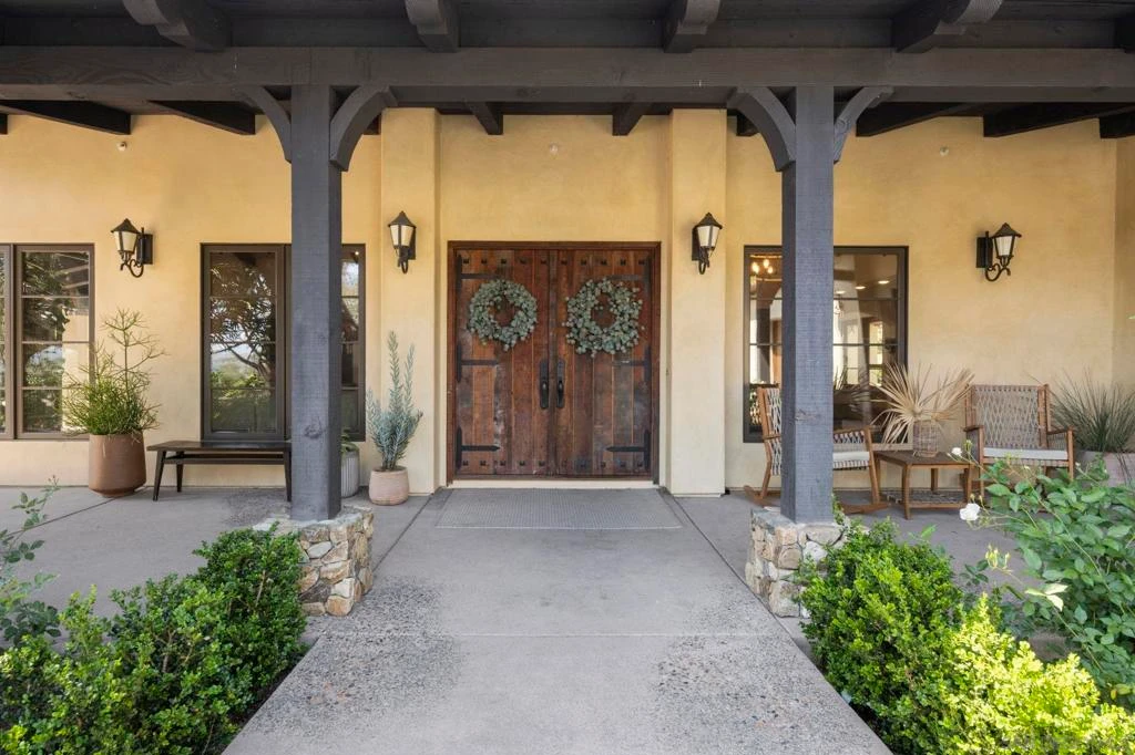 Redesigned by noted Covenant Architect B&W in 2013, this ideal Southern California Spanish Abode was designed to enjoy the luxury of total Peace and Privacy. Picturesque mountain Vistas are enjoyed throughout the over 2-acre lot complete with large and very chic Barn with an exterior of vintage wood, Detached Casita and Main Residence that lives all on One Level. The light filled home and property offer a timeless aesthetic and are set up to easily add on to the main residence for someone wanting a more sprawling layout with additional bedroom suites. The home currently offers ideal indoor/outdoor living, generous bedroom suites, oversized gourmet kitchen, bar area, great room and numerous outdoor spaces to enjoy. This is an incredible Rancho Santa Fe Covenant Opportunity on one of the most charming, quiet streets that is centrally located for easy access to the village and the coast.