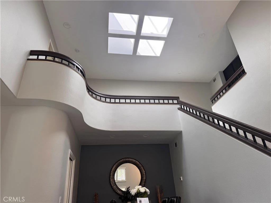 Welcome to 147 Encantado Canyon located in the desirable Belterraza Community of Rancho Santa Margarita. Rarely offered 3 spacious bedrooms and 2.5 bathrooms, 1,743 square feet Home with Coveted 2 Car Driveway. Upon entry you are greeted by an expansive formal living room and dining room with soaring two story vaulted ceilings with stunning skylight. Beautifully appointed kitchen features quarts counter tops, stainless steel appliances and white cabinets. Living Area on entry level is adorned with warm wood plank tile complemented by plantations shutters. The primary suite features a lavish en-suite bathroom and custom closet organizer. Home has been repiped with Pex A pipe. Steps from Tijeras Creek Golf Club and the sparkling community pool and spa. Walking distance to St. Junipero Serra Catholic School, Arroyo Vista Elementary and park. Enjoy all that the city of Rancho Santa Margarita Association (SAMLARC) has to offer including the Lago Santa Margarita and Beach Club lagoon, four pools, 13 parks and hiking trails.