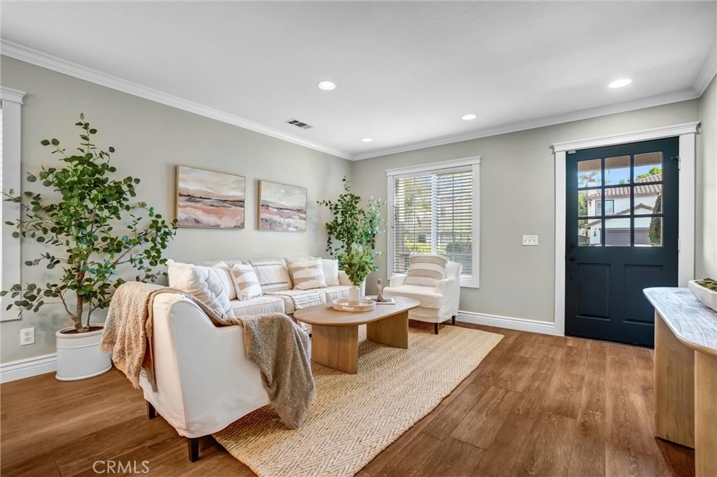 Designed for both refined comfort and effortless entertaining, this beautifully maintained two-story residence is ideally situated in the highly sought-after Cantamar neighborhood of Rancho Santa Margarita — a community known for its strong demand and limited availability. The main level showcases wood-style ceramic tile flooring, recessed lighting, and a spacious open layout that seamlessly connects the kitchen and family room. A classic fireplace anchors the living space, while a sliding glass door leads directly to the backyard — creating effortless indoor-outdoor flow ideal for both everyday living and entertaining. The kitchen features a newer Whirlpool refrigerator, built-in kegerator, breakfast bar seating, and a pantry for organized storage. A well-appointed powder room completes the downstairs. Upstairs, all bedrooms are thoughtfully situated along with a versatile loft — perfect for a home office, study space, or secondary lounge. The generously sized primary suite offers a peaceful retreat with a walk-in closet and an ensuite bath featuring a separate soaking tub. Secondary bedrooms share a spacious bathroom with ample counter space. The private backyard is designed for relaxed Southern California living, complete with a putting green, bistro lighting, mature fruit trees, and a generously sized wraparound side yard with newly added turf — offering both charm and low-maintenance functionality. Major systems have been updated for peace of mind, including a new HVAC system and water heater (2022). The garage is equally impressive with a large workbench and added storage (2022), plus epoxy flooring and a new garage door opener installed in 2026 — creating a polished and highly functional bonus space ideal for a home gym, workshop, or creative studio.