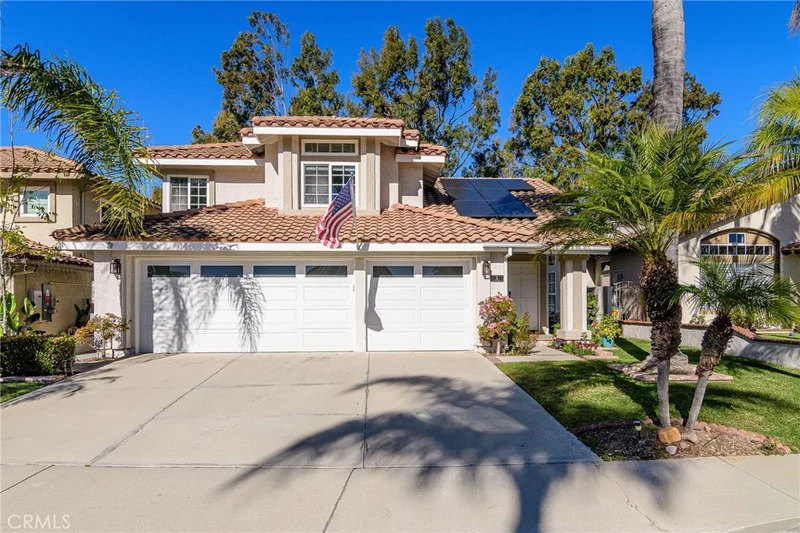 Welcome to this exceptional 4-bedroom, 3-bath single-family residence featuring the highly coveted Plan 3 model, gracefully situated at the end of a quiet cul-de-sac within the prestigious La Tierra community. Set along the Tijeras Creek Golf Course, the home showcases breathtaking panoramic views of Hole 2 from tee to green, offering a rare sense of privacy and resort-style ambiance. Thoughtfully designed for both elegant entertaining and everyday comfort, the home offers a generous entertainer’s backyard highlighted by a sparkling pool and spa, ideal for hosting gatherings or enjoying tranquil evenings under the stars. Inside, refined living spaces are enhanced by a spacious kitchen, soaring cathedral ceilings, and abundant natural light. A main-level bedroom and full bath provide exceptional flexibility for guests, multigenerational living, or a private executive office. The upper level is anchored by a luxurious primary bedroom suite, creating a serene retreat, while additional bedrooms and ample storage complete the home’s well-appointed layout. Additional highlights include a substantial three-car garage with custom built-in cabinetry and a state-of-the-art programmable solar system with backup battery, seamlessly blending sophistication with modern efficiency. Meticulously well maintained and located in one of the area’s most desirable golf course communities, this residence presents a rare opportunity to experience refined living, privacy, and spectacular views in La Tierra.
