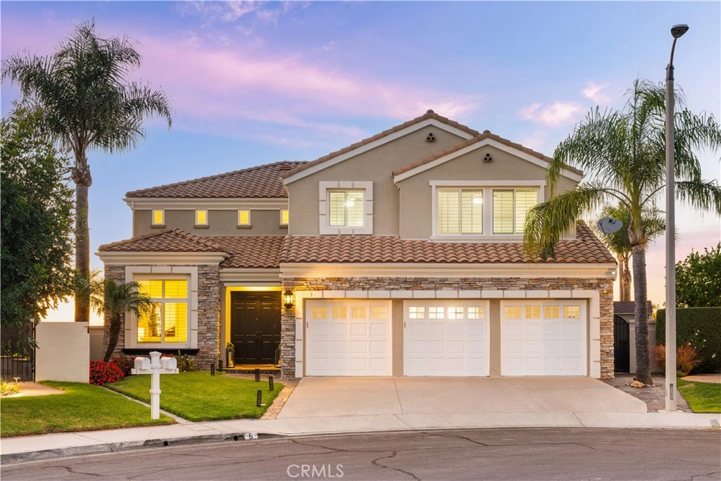 Welcome to 5 Via Taliana — an exceptionally rare offering on one of the most sought-after, view-facing streets in OC. The BEST VIEWS of the rolling hills, city lights all the way to the OCEAN on a clear day! Sitting on an oversized premium lot of over 10,000 square feet, especially hilltop cul-de-sac location. This house making this a truly unique opportunity. Every inch of the home has been meticulously upgraded with high-end finishes, from thoughtfully designed landscaping to luxurious indoor enhancements — blending beauty, comfort, and functionality. The home offers a modern open-concept layout with soaring ceilings, designer lighting, and spacious living areas. The chef’s kitchen is the heart of the home,giant honed marble kitchen island highlight this exquisite home. Organic materials such as real aged French oak floor create a sophisticated ambiance. The open concept living areas with views of the backyard and pool are complete with newly stunning kitchen, which boasts professional grade GE Cafe appliances with 48” range, built in refrigerator, hidden microwave, beverage fridge and custom walk-in pantry. The master bedroom includes a sitting/workout room, 2 spacious walk-in closets, along with an ensuite that is awe inspiring, which displays an extravagant giant glass walled in dual shower enclosure, soaking tub & custom cabinets; all situated to take advantage of the beautiful ambience & views outside. The floor plan is ideal with downstairs, ground floor bedroom, bathroom, separate office and 3-car garage. Additional upgraded features include a whole house water filter, tankless water heater, re-piping throughout & thermostatic valve in master shower for one touch temperature. Residents can enjoy resort-style amenities, including a pool, clubhouse, BBQ area, dog parks, sports courts, and watch the amazing sunset. Best price value in the whole area. Huge back yard with city lights view, you can have sunset view every day!