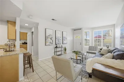 Welcome to 67 Via Pausa, a beautifully updated upper-level condo nestled in a tranquil, private pocket of Rancho Santa Margarita. Property boasts golf and lake views. Located in a charming courtyard-style setting, this home offers a peaceful front approach with paved walkways and lush greenery that create a serene first impression. Inside, you’re greeted by a stylish bathroom to the left—featuring elegant grey marble stone accents and a true in-home steam sauna shower, complete with a glass enclosure, ceiling-mounted rainfall showerhead, and a pebble-tiled floor. A unique diagonal vanity finished in warm light wood tones completes the space. The space then opens into a bright, spacious living room filled with natural light, anchored by a cozy fireplace, with large windows and direct access to a private balcony. The adjacent kitchen has been updated with sleek quartz countertops, modern appliances, a large farmhouse-style sink, soft-close drawers, and crisp white cabinetry, creating a bright and functional workspace with ample storage. The generously sized bedroom offers a peaceful retreat with mirrored sliding closet doors and its own access to the balcony. The private balcony is a true highlight, offering a panoramic view of the lush golf course, a sparkling lake, and mature trees. Additional conveniences include a stackable washer/dryer unit and a detached garage providing secure parking and extra storage. Residents of this vibrant community enjoy access to outstanding amenities, including a beach club, 13 parks, multiple community pools, sports courts, and extensive hiking and biking trails—along with highly rated nearby schools. 67 Via Pausa combines modern updates, abundant natural light, and sweeping views in a serene community setting. Move-in ready and full of charm, this home offers an ideal blend of comfort, style, and lifestyle in highly desirable Rancho Santa Margarita.