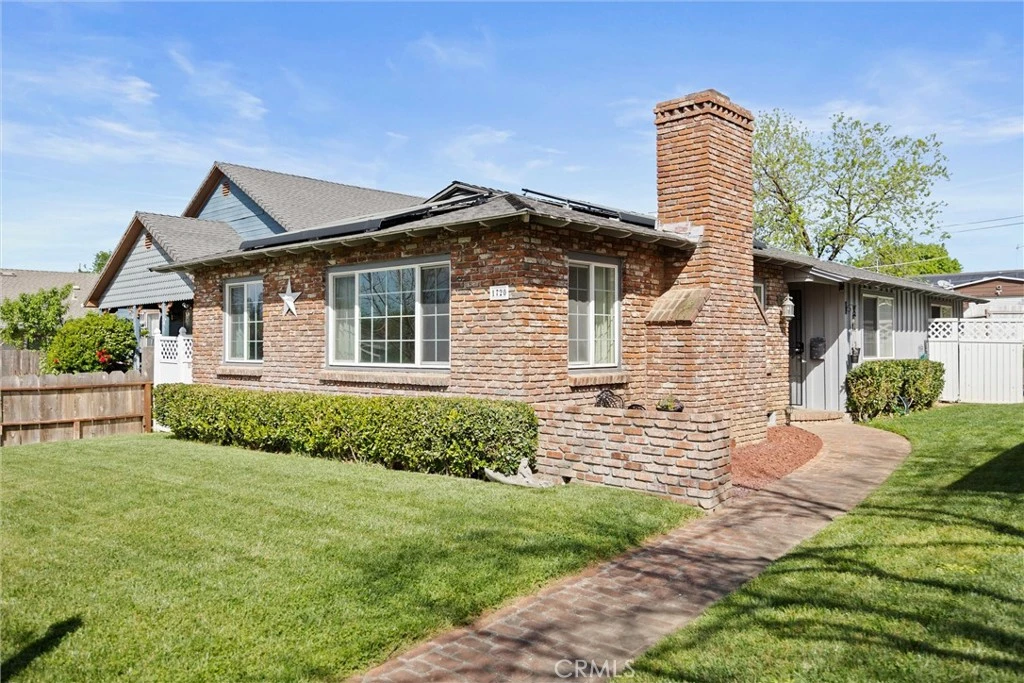 Welcome to this thoughtfully updated 3-bedroom, 1 bath home, offering 1,366 square feet of charm and modern comfort. Built in 1954, this residence effortlessly blends classic character with stylish upgrades throughout. Step inside to discover rich hardwood flooring, tile accents, and a beautifully renovated bathroom designed with both function and elegance. Sunlight pours through numerous windows, creating a bright and inviting atmosphere that enhances every space. The living room serves as the heart of the home, featuring a classic brick fireplace, expansive natural light, and serene views of the yard—perfect for both quiet evenings and lively gatherings. The kitchen offers an open, practical layout with a convenient bar area, ideal for casual dining or entertaining. Outdoors, the property truly shines. Lush, mature landscaping frames both the front and back yards, complemented by a charming brick entry, peaceful patio area, and inviting walkways—creating a private oasis for relaxation or hosting. A detached garage with alley access, ample off-street parking, and room for multiple vehicles add to the home’s versatility. Additional features include leased solar for energy efficiency, a welcoming white vinyl picket fence in the front, and privacy fencing in the rear—offering both curb appeal and seclusion. A rare blend of character, comfort, and convenience—this is one you don't want to miss.