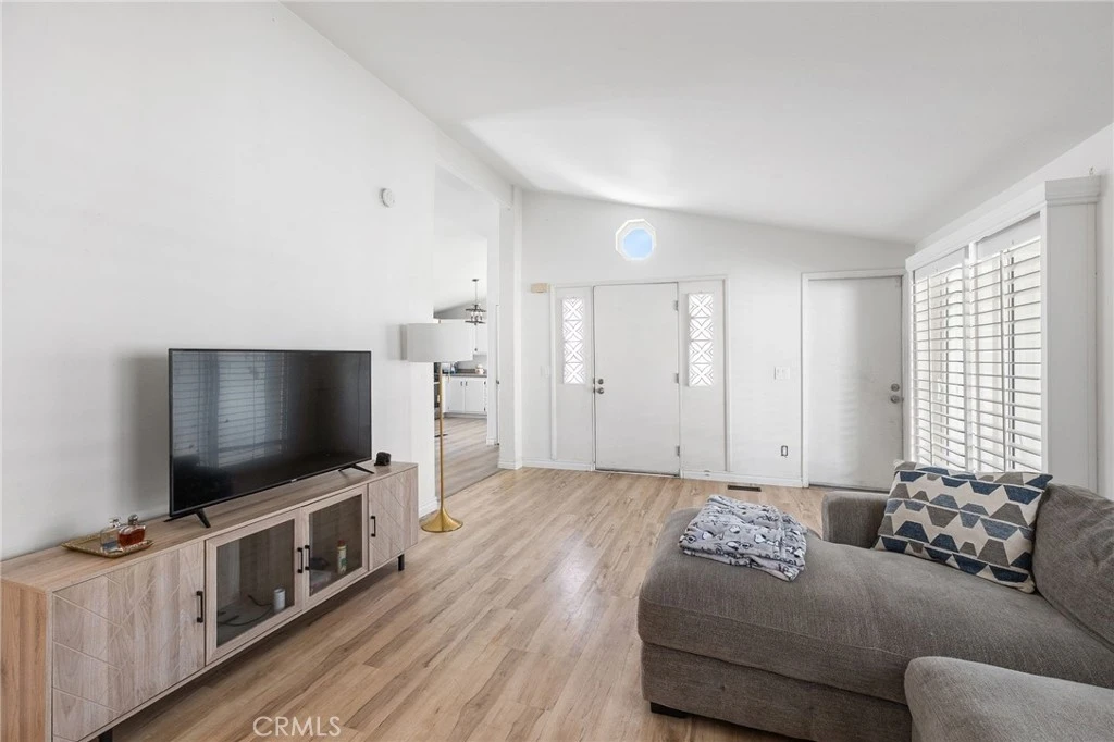 Welcome home to this beautifully maintained 2-bed, 2-bath detached residence nestled in a sought-after Redlands community. The front yard offers charming curb appeal with landscaped greenery, a cement walkway, and tasteful stone accents. With 1,100 sq ft of thoughtfully designed living space, this home offers the perfect blend of comfort, style, and low-maintenance living. Step inside to a bright and airy living room featuring high ceilings and stylish vinyl wood flooring that flows seamlessly throughout the home. The kitchen is both functional and inviting, showcasing crisp white cabinetry. The primary bedroom offers a private retreat with its own en suite bathroom, while the additional bedroom is well-sized for guests, family, or a home office. Enjoy the spacious backyard, complete with vinyl fencing, a mature orange tree, and a long covered patio—ideal for outdoor dining or relaxing evenings. Amenities include a sparkling pool and pickleball court, making it easy to stay active and connected. This is a fantastic opportunity to own a move-in ready home in a desirable location.