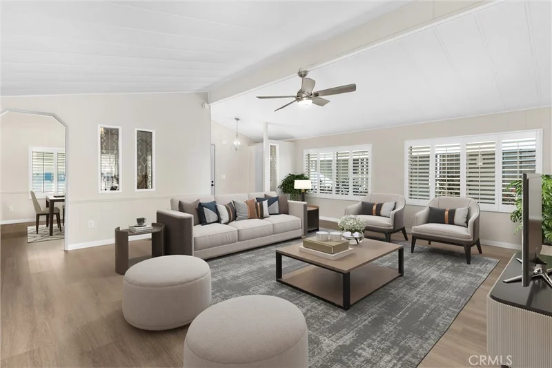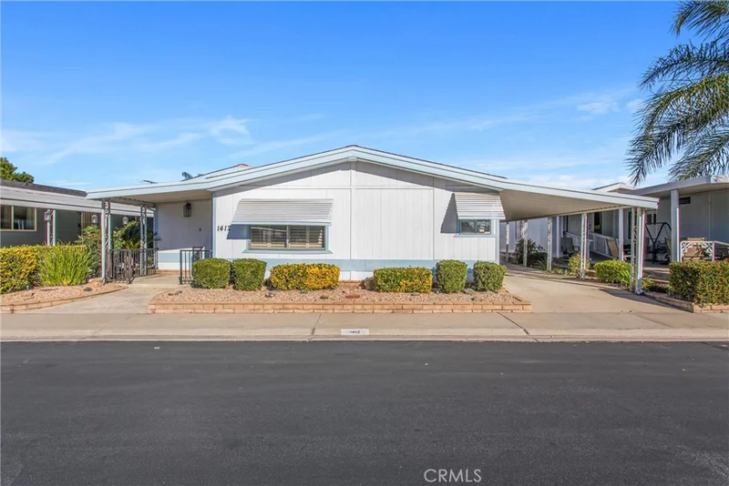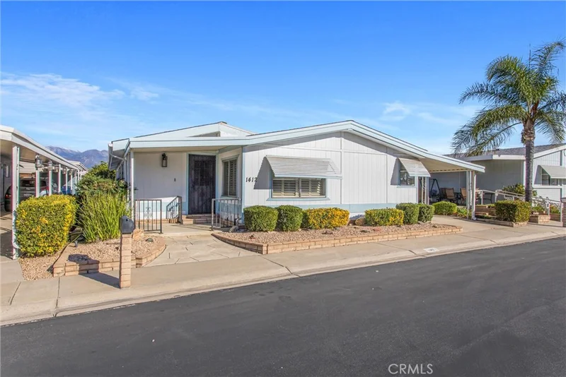 Welcome to 1412 Medallion in the highly desirable 55+ community of Royal Carriage Estates in Redlands! This home is on a permanent foundation Medallion is a beautifully maintained 3-bedroom, 2-bath home offers approximately 1,960 sq. ft. of comfortable living space. Built in 1984, the home has been thoughtfully updated and is truly move-in ready. Step inside to find new interior paint and new flooring throughout, complemented by classic plantation shutters that add charm and style. The spacious kitchen features granite countertops, upgraded cabinetry, pullouts in the cabinets for easy access of items, stainless steel appliances (all included!), and a newer dishwasher. The refrigerator, washer, and dryer are also included, making this home an exceptional value. The formal dining room showcases a beautiful built-in hutch, perfect for displaying your favorite pieces. The expansive primary suite offers a huge closet with mirrored doors, while the upgraded primary bath includes a newer vanity, mirror, two medicine cabinets, and an upgraded walk-in shower. Additional highlights include: Indoor laundry room with abundant cabinet storage Updated guest bathroom with granite countertop, upgraded vanity, and solar light. Covered front patio for relaxing mornings or evening visits. Large storage shed. Low-maintenance yard. Enjoy Redlands living in Royal Carriage Estates with community amenities. HOA includes Water, Trash and sewer along with maintenance of the pool, club house and common areas and this homes location is close to shopping, dining, and freeway access. This spacious, upgraded home offers comfort, convenience, and value. Don’t miss your opportunity to make it yours!
