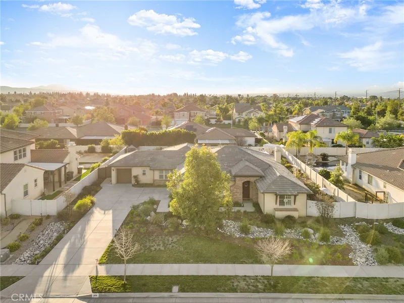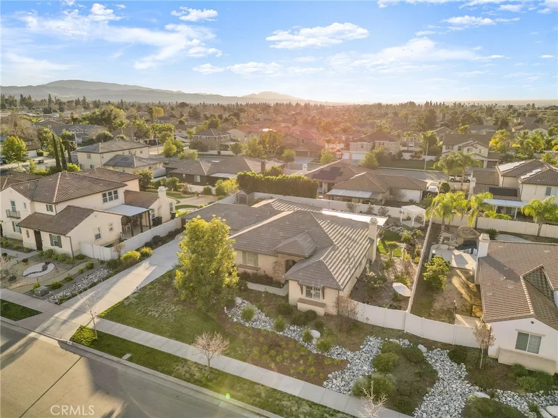 Welcome to this beautifully appointed custom single-story home offering 4 bedrooms and 3.5 bathrooms on a spacious 1/3-acre lot in a well Established neighborhood of Redlands. Designed with both comfort and style in mind, this residence showcases tasteful modern finishes and warm neutral tones throughout. Step inside to find rich hardwood flooring, plantation shutters on every window, a whole-home water softener system, and an energy-efficient 24-panel PAID solar system. The open-concept layout is ideal for entertaining, centered around a grand kitchen featuring abundant prep space, generous cabinetry, and a walk-in pantry. The thoughtfully designed split-bedroom floor plan offers privacy and flexibility for family living, while an additional family room/flex space on the north end of the home provides the perfect area for a media room, office, or playroom. Outdoors, unwind in the serene backyard oasis complete with an alumawood patio cover, stamped concrete, Vinyl fencing with custom iron gates and a charming river-rock stream feature spanning the length of the yard. Both side yards are fully irrigated and home to thriving fruit groves including avocado, apple, grapefruit, tangerine, plum, guava, dragon fruit, Chinese apple, blood orange, cherimoya, and longan — all producing. Additional highlights include a 3-car garage, convenient indoor laundry room and water softener system. Modern comfort, energy efficiency, and resort-style outdoor living — all on one level with No HOA or Mello Roos! Don't Miss this one!