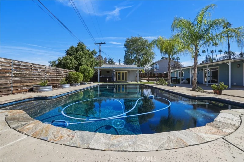 Be captivated as you step inside 1582 Franklin Avenue, an updated modern farmhouse tucked away in desirable South Redlands. With an oversized bright yellow Dutch door welcoming you home, this single story pool residence blends storybook character with refined luxury. Offering 2,310 square feet of thoughtfully designed living space, this four bedroom, with a space for a 5th bedroom, three full bathroom home sits on a 13,340 lot. The curb appeal is undeniable, framed by drought tolerant landscaping and mature greenery setting the tone for what awaits inside. Light filled open floor plan designed for effortless living and entertaining. Large insulated dual pane windows with custom shutters invite abundant natural light, creating a vibrant atmosphere filled with Redlands charm and character. The spacious dining room is ideal for gatherings, while the cozy fireplace in the living room adds warmth and ambiance for relaxing evenings at home. The open kitchen is the heart of the home, featuring a large center island with an eating counter bar, perfect for casual mornings or lively dinner parties. Newer appliances complement the modern farmhouse aesthetic with beauty and function, and the entertainer’s layout flows seamlessly to the backyard retreat. Designed with versatility in mind, the home offers dual primary bedrooms, an indoor shower and bathroom for pool guests with an exterior door, a large ADU space / private room / office space with a walk in closet, attached to the garage ideal for multigenerational living or guests. All bathrooms have been completely updated and are in pristine condition with thoughtful attention to detail, and newer flooring enhances the turnkey appeal. The home has been upgraded with new plumbing throughout, a new tankless water heater, and a new sewer line connected to the street, offering added efficiency and peace of mind. A dedicated laundry room with a farm sink, ample storage, and built in shelving adds convenience and character. Step outside to your private backyard sanctuary and enjoy the extra large sparkling salt water pebbletec swimming pool, two large covered patios, an outdoor BBQ kitchen, and a large inviting fire pit, perfect for year round entertaining. Detached extra long two car garage. Located minutes from historic downtown Redlands, Prospect Park, and the Redlands Bowl. South Redlands remains one of the city’s most coveted neighborhoods, and this turnkey modern farmhouse is more than a home, it is a lifestyle.