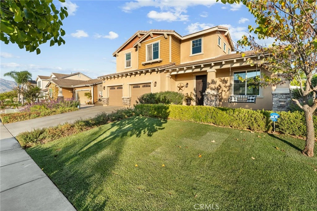 Welcome to your dream home in one of Redlands' most coveted neighborhoods. This stunning two-story residence combines architectural beauty with practical, modern upgrades, offering a seamless blend of comfort and sophistication without an HOA fee! As you step inside, you are immediately greeted by soaring high ceilings and an abundance of natural light. The thoughtfully designed open-concept floor plan connects the great room, dining area, and kitchen—creating the ultimate environment for entertaining and family gatherings. The gourmet kitchen is a chef’s delight featuring corian countertops, stainless steel appliances, a massive walk-in pantry, and ample custom cabinetry. Designer finishes include upgraded flooring, recessed lighting, and modern fixtures throughout. This exquisite home uniquely features two spacious bedrooms, one has been converted to an office but easily be converted back to a bedroom, and two bathrooms on the main level, offering perfect flexibility for guests or multi-generational living. As you retreat upstairs you walk into a spacious loft as well as two additional bedrooms complete with a jack and jill bathroom. Following through to the master suite, you will find a true sanctuary featuring a large walk-in closet and a spa-like en-suite bathroom with dual vanities and a deep soaking tub. Step outside to your private backyard paradise. Designed for year-round enjoyment, the outdoor space features a covered patio with a large built in BBQ island with fridge. It also provides a cozy fire pit zone perfect for evenings under the stars. The professional landscape yard provides plenty of room for activities. This home is as smart as it is beautiful, equipped with high-value convenience and energy-saving items such as paid off solar panels for significant energy savings, a tankless water heater, ceiling fans in key rooms. The attached 3 car tandem garage has plenty of room to park your vehicles or you can split it and take advantage of the deep garage to use as an extra space, currently being used as a home gym. Situated in a friendly, vibrant community, you are just steps away from local parks featuring basketball courts, playgrounds, and scenic walking paths. With top-rated schools, premier shopping, and fine dining just minutes away, this home offers the quintessential Redlands lifestyle. Call today to schedule your own private tour.