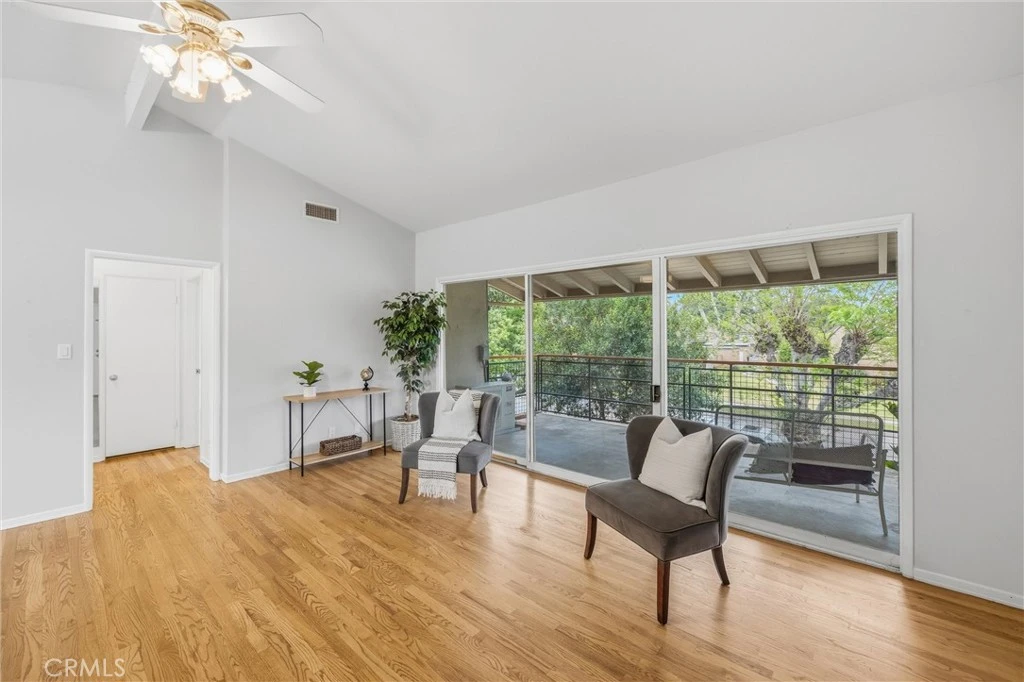 REMODELED REDLANDS RETREAT w/ MASSIVE BALCONY, WOOD FLOORS, SUNSET VIEWS, VAULTED CEILING & COMMUNITY POOL in the EXCLUSIVE OWNER-OCCUPANT BRAEMAR COMMUNITY. There are places that simply feel right the moment you arrive. Braemar is one of them: a quiet, owner-occupant community where no rentals are permitted and the pride of ownership runs deep. Tucked along the edge of the property, this remodeled two bedroom, one bath end unit carries the calm of Redlands at its best. Wood floors, new windows, golden afternoon light. Some places ask you to settle in. This one already feels like home. Step inside and the calm arrives immediately. Warm wood floors run throughout, grounding every room in natural warmth and easy elegance. Light moves through new dual-pane windows, filling the space with the kind of quiet brightness that makes mornings feel like a gift. The fully remodeled kitchen is the heart of it all with finishes that strike the perfect balance between timeless and current. This is a kitchen that inspires slow Sunday breakfasts, spontaneous dinner parties, and flowers left on the counter just because. The living room with its vaulted ceiling is open, grounded, and made for exhaling. Both bedrooms continue the softness, wrapped in natural light and a stillness that invites long, restful nights. The bright refreshed bathroom offers the quiet luxury of a space that feels genuinely cared for. Then there is the balcony. Massive, private, and oriented toward the western sky, it delivers the kind of sunset views that stop you mid-sentence. Imagine evenings here with a glass of wine as the sky turns amber and rose, or quiet mornings with coffee while Redlands wakes up below. String lights, outdoor dining, a hammock, a garden of potted herbs. Whatever vision you carry, this balcony can hold it. The Braemar community adds even more to love: a sparkling pool, covered parking, beautifully maintained grounds, and a shared garden where neighbors grow and exchange homegrown fruits and vegetables. HOA dues cover fire insurance, water, sewer, trash, landscaping, exterior maintenance, in-wall plumbing and electrical, hot water heaters, and full use of all laundry facilities, keeping the logistics of life simple so your attention can go where it belongs. Minutes from ESRI, downtown Redlands, beloved local cafés, and weekend farmers markets, this home sits right at the intersection of community and calm. Maybe this is where your story begins.