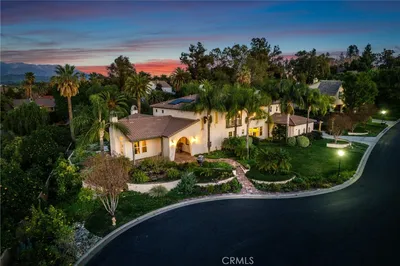 Custom-built with a commanding presence, drawing influence from Spanish and Mediterranean styles. Newly remodeled with luxury upgrades! City light and mountain views! At the end of a private cul-de-sac within the highly sought-after Smiley Heights district in South Redlands. The estate’s impressive, sweeping front lawn and tall, manicured palm trees provide a dreamy setting for your Mediterranean oasis. Through a stately arched portico and old-world double doors, step into a sizeable formal entry with travertine tile and a custom floor mosaic. High ceilings and plenty of tall windows elevate the space and fill it with warm, natural light. Plenty of room to host or simply relax in your own way with a family room, a living room, an office, a great room, and a huge dining room. All bedrooms feature en-suite baths and walk-in closets. But the crowning jewel is your spacious primary suite. Here you can lounge in peace in front of your custom fireplace or wake up to a gorgeous mountain view as you step out onto your own private balcony! Throughout the house, recent upgrades include new paint, crown molding, travertine and wood floors, new granite countertops, modern luxury lighting, new garage doors, a new tankless water heater, a whole-house water purification system, paid Tesla Solar & Battery, and so much more! The family room is wired with a speaker system and includes built-in cabinetry. Prepare meals like a pro in your dream kitchen, complete with new Taj Mahal Quartzite countertops, custom cabinetry with slide-out & touch control drawers and trash bins, stainless steel appliances, a wine fridge, a new kitchen island, new lighting, a walk-in pantry, and a butler’s pantry. Unwind in your custom backyard retreat, which boasts an edible landscape of strawberries, 12 grape vines, and over 20 different fruit trees! Korean grass and native pollinators complete the oasis, along with raised garden beds, a gas fire pit, and landscape lighting. Plenty of room for an RV. Fall in love with the natural beauty of San Timoteo Canyon as you hike the nearby Carriage Trail. Schedule a private showing today!
