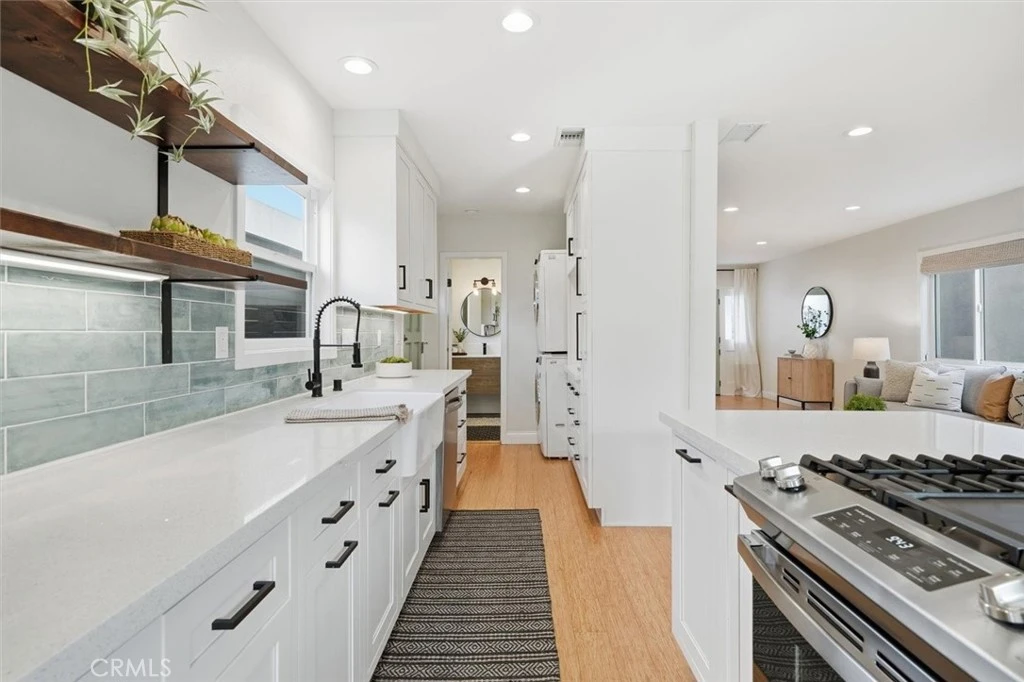 Set on a desirable corner lot in Redondo Beach, this immaculately maintained, thoughtfully updated home has a crisp modern feel and standout indoor-outdoor living. A striking contemporary front door opens to a bright living room with wood floors and a custom crafted TV nook that keeps the space polished and functional. The open layout flows into a beautifully refreshed kitchen featuring new cabinetry and quartz countertops, a farmhouse sink, designer tile backsplash, a spacious center island and a newer cooktop with griddle. A custom coffee nook adds everyday convenience, while built-in seating creates the perfect casual dining area with room for a large table. The bathrooms have been completely redone with fresh tile, paint, updated tub and shower surrounds and new vanities, delivering a clean, elevated look throughout. The downstairs bath showcases a glass shower, hex tile flooring, a floating wood vanity and herringbone tile detail in the shower. Sliding doors open to a custom tropical hardwood (cumaru) deck with built-in seating and plenty of space to grill, relax or gather around a fire pit, complemented by matching cumaru fencing for a warm, modern finish. Upstairs, a bonus space is ideal for an office or playroom and opens to a large patio for an additional outdoor escape. Three upstairs bedrooms feature wood floors, fresh paint and ample closet space, along with custom window coverings that complete the look. Behind the scenes, major upgrades provide comfort and peace of mind: new double-pane vinyl windows throughout, a new central A/C and heating system, new Pex/copper plumbing lines, a hot water recirculation system for instant hot water at every faucet, whole house water filtration, a 200-amp electrical panel and a water heater replaced in 2020. Recessed lighting, a skylight, custom railings and clean horizontal fencing tie it all together—this is a turn-key Redondo Beach opportunity with style, function and upgrades already done.