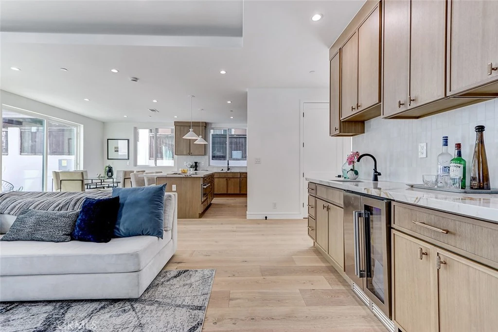 New Construction. Detached townhome on the west side of North Redondo, within the Jefferson Elementary School district. This 4-bedroom, 4.5-bathroom residence offers 2,614 square feet with no shared walls and a private backyard for each unit. The main level features 10-foot ceilings, wide plank engineered wood flooring, and a bright, open layout. The kitchen is centered around a large island and equipped with Thermador appliances, including a 6-burner range, hood vent, and included refrigerator, along with custom slim shaker cabinetry in an oak finish. The living room includes a fireplace and a wet bar with beverage cooler. Upstairs, the primary suite offers a huge walk-in closet with built-ins, and a bathroom with dual vanities, soaking tub, walk-in shower, and separate water closet. Additional features include solar panels, Ring security system, central AC, Google Nest Thermostat, and a two-car garage with EV charging outlet, epoxy floors, and built-in storage. Well-positioned in North Redondo with convenient access to local schools, Hermosa Beach, the Redondo Beach dog park, and the ultimate quality of life that continues to draw people to the South Bay.