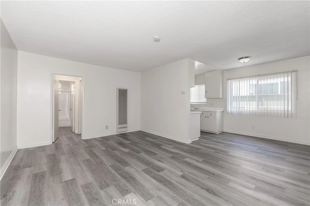 Tastefully upgraded 2 Bedroom + 1 Bathroom 1st floor apartment. New paint, newer laminate floors throughout, remodeled kitchen with newer cabinets, engineered-stone countertops and existing appliances; stove/oven and refrigerator. Large Living Room and separate Dining area, with bright natural light. Fans throughout the home. This is an 8 unit building with plenty of sunlight. Great location for walkability and for commuting. This unit comes with 1 private enclosed garage space for this unit. This building also has onsite common Laundry machines.