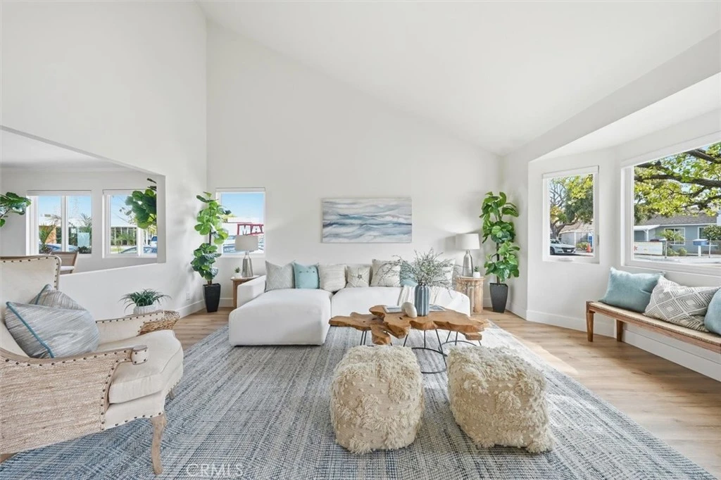 Popular detached corner townhome with its own driveway and private backyard. This beautifully upgraded 4-bedroom, 3-bath residence spans approximately 2,482 sq ft and showcases brand-new vinyl plank flooring and baseboards throughout, fresh interior paint, and numerous thoughtful detail upgrades. The living room features vaulted ceilings and south-facing bay windows, creating a bright and airy space that flows seamlessly into a spacious formal dining area. The oversized kitchen is a true standout, boasting custom cabinetry, abundant counter space, a breakfast bar, and breakfast nook. A high-end stainless steel Wolf 6-burner range with double oven, complemented by a pot-filler faucet, makes this kitchen ideal for both everyday living and entertaining. The large family room adjacent to the kitchen offers a wet bar with sink and wine fridge, a cozy fireplace, and sliding glass doors that open to a private backyard designed for indoor-outdoor living. The outdoor space features paver tiles, a trellis-covered composite deck and spa with a new cover, new cushions, and a new control panel. Upstairs, all four bedrooms are generously sized, including a south-facing primary suite with a walk-in closet and ensuite bathroom featuring dual sinks, a walk-in shower, and a soaking tub. Two additional bedrooms feature vaulted ceilings and oversized wardrobe closets. Additional highlights include a dedicated upstairs laundry room, direct access from the garage, dual-pane windows, and a low-maintenance turf front lawn. Located in a highly convenient area with close proximity to shopping, freeways, and beaches, plus ample street parking, this home offers the privacy of a detached residence with exceptional convenience.