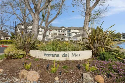 Updated modern condominium in Ventana del Mar on Redwood Shores Lagoon. Featuring a sought-after split-bedroom floor plan, this unit with two bedrooms and bathrooms centers on an open-concept living space. The open living and dining areas enjoy the warmth of a cozy fireplace and cool breeze from the balcony. The streamlined kitchen, boasting chic cabinets, quartz counters, and stainless steel appliances, overlooks the living space via a dining counter, perfect for entertaining. The primary suite offers a serene retreat with an array of windows and reading nook, a modern bathroom with double-sink vanity, and a walk-in closet with Elfa storage. A second bedroom with an adjacent bath, plus in-home laundry, adds ultimate convenience. Residents enjoy resort-style amenities, including a waterside pool, spa, fitness center, clubhouse and access to shoreline walking paths. Come live the dream!
