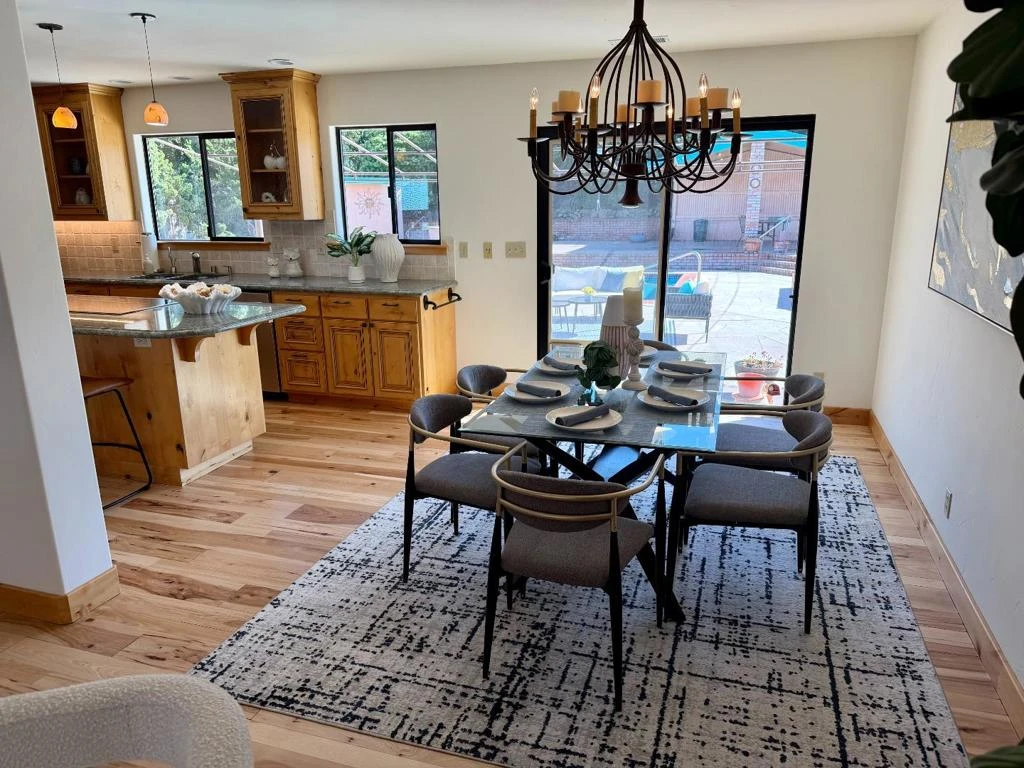 Welcome to 1082 Eden Bower Lane. Charming rustic home offering 2,430 square feet of light-filled living space. Set on a 10,385 square foot lot, this well-maintained property features 3 bedrooms and 3 baths, a light-filled living room with a gas fireplace. The kitchen includes granite countertops, stainless steel appliances, and a granite island with an induction cooktop. The dining area opens to the backyard and sparkling pool, creating the perfect space for entertaining. Refinished hardwood floors, fresh paint, and solid Hickory wood doors throughout. The lower level offers a versatile, expansive family room with two ceiling fans and a cozy gas fireplace. Additional highlights include an oversized two-car garage with a workshop area and built-in cabinets. The garage floor is finished with a fitted floor mat. Easy access to commuting and top-rated schools.