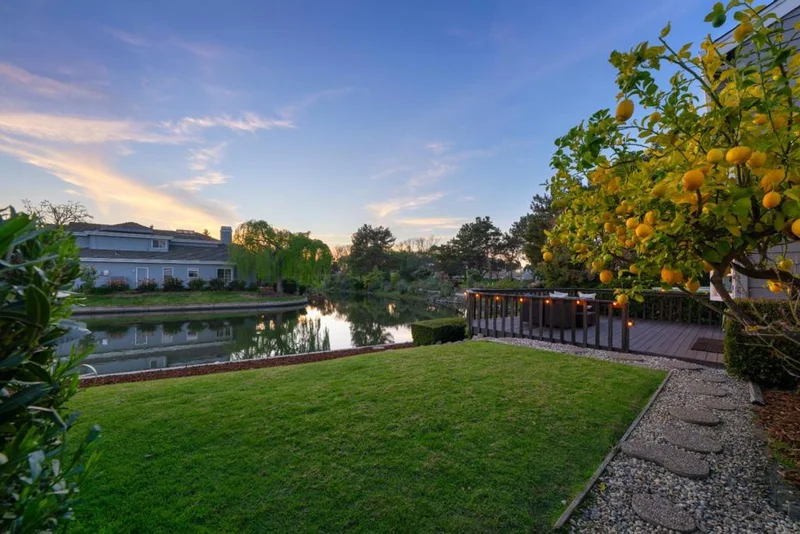 Set along the tranquil lagoon, this beautifully appointed home blends warmth, comfort, and timeless style with vaulted ceilings, inviting living spaces, and captivating waterfront grounds that feels especially magical at sunset. A bright, airy living room with soaring vaulted ceilings welcomes you in and fills the home with natural light. Beautiful hardwood flooring throughout adds warmth and continuity to the living spaces. The adjoining dining area opens through sliding glass doors to a private side patio, while the adjacent kitchen connects directly to the expansive rear deck, creating wonderful indoor-outdoor flow. Upstairs features 3 bedrooms & 2 bathrooms, including a serene primary suite overlooking the lagoon and offering a peaceful sense of retreat. The additional bedrooms provide flexibility for family, guests or a home office. Outdoors, the setting is especially captivating, with a spacious deck & lawn overlooking the tranquil water and providing a picturesque backdrop for dining, relaxing evenings and year-round enjoyment of the natural surroundings. Rarely does a home combine such inviting living spaces, beautiful outdoor areas and a picturesque waterfront setting. An exceptional opportunity to enjoy the beauty and tranquility of waterfront living in Redwood Shores.