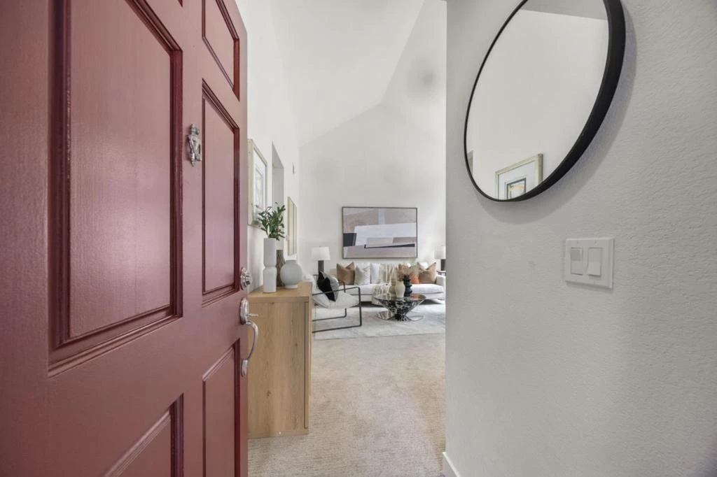Stylish Corner Unit in Redwood Shores with Phenomenal Lighting Beautifully remodeled second-floor corner unit in the sought-after Redwood Shores neighborhood of Redwood City. High-end finishes include a bright and airy kitchen with windows, quartz countertops, new stainless steel appliances and cabinetry, plus designer flooring and recessed lighting. Updated light fixtures and a brand-new in-unit washer/dryer. Remodeled bathroom with stylish shower tiles, a new shower door, vanity, and new flooring. Vaulted ceilings in the living room and bedrooms create a bright, open feel, with the bedrooms overlooking scenic walking trails and cycling paths. No neighbors behind you. A sliding glass door from the dining area opens to a private patio. Includes one designated parking space #849, detached garage, and ample guest parking. Community amenities include a pool and spa. HOA dues are $591.00 a month, which includes water/garbage. Conveniently close to schools, shopping, parks, Oracle, and other major tech companies, Highway 101, Caltrain, and San Francisco International Airport. An exceptional opportunity, your most discerning clients will not be disappointed