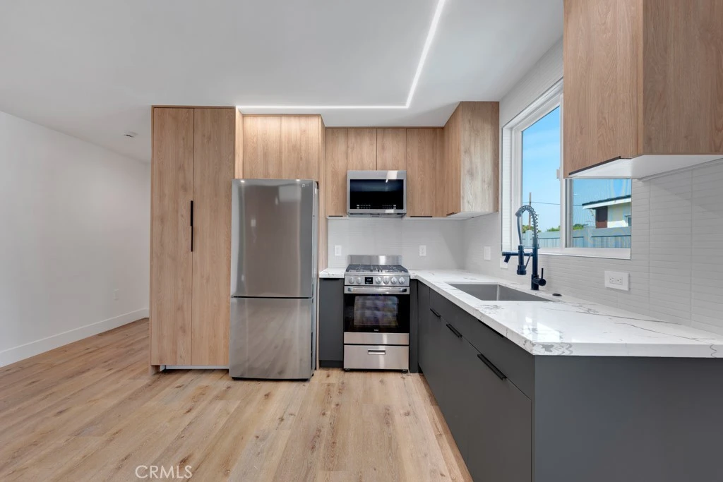Tucked behind a gated setting, this thoughtfully designed 1-bedroom, 1-bathroom home offers a seamless open-concept layout that flows into a sleek, modern kitchen with premium appliances. Clean lines and elevated finishes create a space that feels both refined and functional. A standout feature is the generously sized front yard—an inviting and very private outdoor retreat ideal for relaxing or unwinding at home. The residence also includes an in-unit washer and dryer along with smart storage throughout. Set on a secure property. With its privacy, thoughtful design, and low-maintenance lifestyle, this home is a rare find in a great neighborhood.