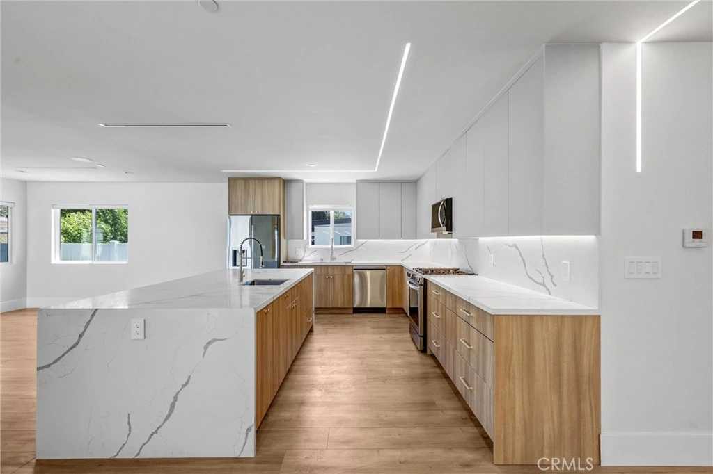 Fully reimagined in 2025, this exceptional property offers rare flexibility in one of the area’s most desirable neighborhoods — set on a quiet, beautiful street with pride of ownership throughout. Whether you’re seeking a primary residence with income potential, a multi-generational living solution, or a fully leased investment with strong cash flow, this home delivers. The property features a stunning 3-bedroom, 2-bath main residence plus a private 1-bedroom, 1-bath ADU — offering multiple ways to live and invest. Live in the main home and offset your mortgage by renting the ADU. Lease both residences for immediate income potential of approximately $7,900 per month. Or create a private compound for extended family, guests, or a dedicated home office retreat. The primary residence is designed for modern living, showcasing a bright open-concept layout filled with natural light. The chef’s kitchen centers around an oversized island with custom cabinetry and premium stainless steel appliances. The spacious living room features a statement fireplace and oversized windows, with double doors opening to a private backyard deck surrounded by mature landscaping — creating seamless indoor-outdoor flow ideal for both everyday living and entertaining. High-end upgrades throughout include smart home integration, security camera system, premium audio, custom lighting, wide hallways, generously sized bedrooms, and a dedicated laundry area. The curb appeal is polished and welcoming, framed by lush greenery. The attached ADU offers its own private entrance and gated yard space, providing independence and privacy. Finished to the same high standard, it includes stainless steel appliances, gas range, dishwasher, in-unit washer and dryer, energy-efficient windows, surround sound speakers, security system, and separate heating and cooling. Beautifully renovated and thoughtfully upgraded, this property offers exceptional versatility, strong income potential, and a prime location on a quiet street in a highly desirable neighborhood.