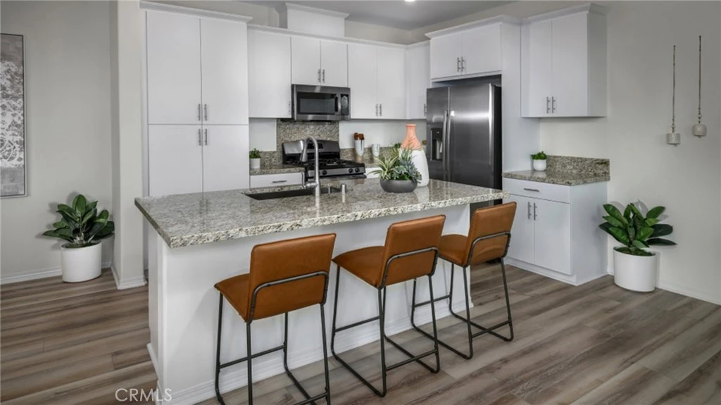 MODEL HOME! Includes Custom Designer Features! Welcome to this beautifully designed two-story detached townhome, where convenience meets modern elegance. On the first level, you’ll find a seamless open floor plan that integrates the Great Room, kitchen, and dining area, creating the perfect space for relaxation and entertaining. The dining room features sliding glass doors that open to the outdoor area, allowing for a harmonious blend of indoor and outdoor living. Upstairs, you'll discover all three spacious bedrooms, including a luxurious owner’s suite that serves as your personal retreat. This serene suite boasts a restful bedroom, a private en-suite bathroom, and a generous walk-in closet, ensuring ample storage and comfort. The Cove, a wonderful collection of new homes, and are nestled within the River Ranch masterplan in Rialto. Residents here enjoy exclusive access to a vibrant recreation center complete with a sparkling pool, as well as beautifully maintained onsite parks and scenic trails for outdoor activities. With the Renaissance Marketplace just a stone’s throw away and the Shandin Hills Golf Club nearby, convenience is at your doorstep. Plus, easy access to I-210, I-215, and I-15 makes commuting a breeze. Experience the perfect blend of style, comfort, and community living at The Cove!