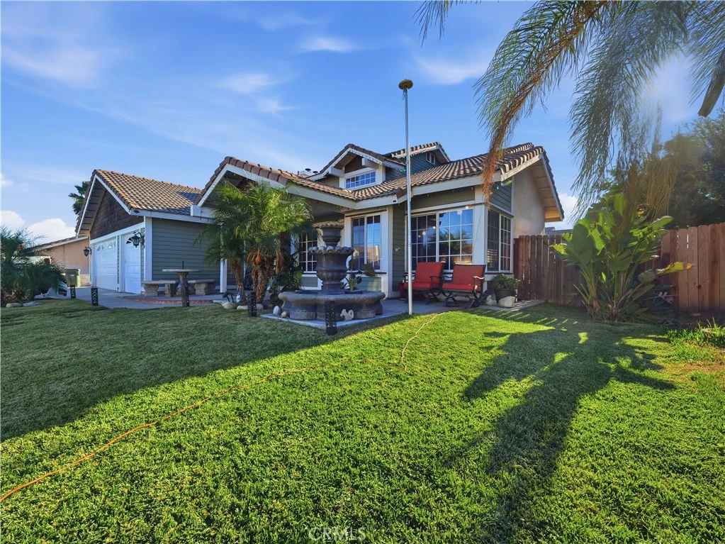Welcome Home! This beautiful two-story home is nestled in the sought-after El Rancho Verde community in North Rialto, this home offers a prime location just north of the 210 freeway with easy access to near by amenities. This Home offers 4 bedrooms (one downstairs), 2.5 bathrooms (one downstairs) and 2,347 square feet. There is plenty of room for a pool, RV Parking and all your entertainment needs. Don't forget about the beautiful view of the mountains! As you walk into the house, you will notice the beautiful hardwood floors, including hard wood on the stairs! Also, you will notice the high cathedral ceilings ! Enter into the kitchen and living room and you will see the wonderful open floor plan concept. The living room consists of a nice fireplace, which is very cozy in the winter. The kitchen counters, cabinets and cabinets are in great condition . The bedrooms and master bedrooms are very spacious. Additional benefits: Walking distance to public schools, automatic sprinklers front and back, a balcony connected to the master bedroom which overlooks the spacious backyard, a covered patio, central air conditioning, new electrical panel to charge electric cars. come see this home in person for yourself!!!