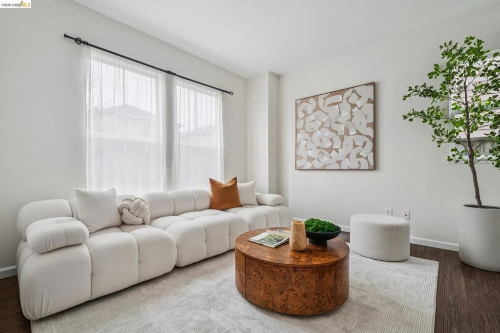 This inviting 3-bedroom, 2-bath residence is thoughtfully designed and features recent updates to the kitchen and bathrooms that bring a fresh, stylish feel to the home. Light fills the living areas, creating a warm and welcoming atmosphere perfect for everyday living and entertaining alike. Step outside to your backyard retreat — fully fenced and designed for both relaxation and gathering with loved ones. Enjoy outdoor dining on the deck while surrounded by fruit trees and vines, including persimmon, apricot, plum, passion fruit, grapes, fig, lemon, dwarf blood orange, pomegranate, and an assortment of berries such as strawberry, raspberry, blackberry, and goji berry. Rain tanks support sustainable living, and owned solar panels add long-term energy efficiency and savings. The attached garage offers convenient interior access and a dedicated 220v/240v outlet to charge an EV. There is also an off-street parking space. HOA dues are $125 per month and includes front landscape maintenance for easy curb appeal year-round. Ideally located just 2 miles from the Richmond Ferry Terminal and the amenities of Marina Bay, you’ll enjoy waterfront trails, dining, and commuter convenience. With quick access to Interstates 580 and 80, getting around the Bay Area is breeze!