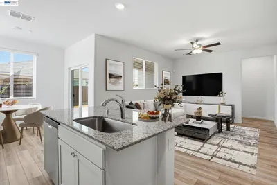 Nestled away in the gated Summit at Liberty 55+ community, this one-story home features a stylish and functional layout. The open design combines the kitchen, living and dining areas and offers a large center island. Two large bedrooms plus two well-appointed bathrooms, one with a bathtub and the other with a large shower. Spacious walk-in closet in the primary suite. Front and rear covered patios and low-maintenance yards offer multiple areas to unwind and relax. Owned solar panels boost home's energy efficiency. Enjoy all the amenities the neighborhood has to offer including the large pool and spa, gym and sports courts, dog park, clubhouse, events barn, community garden and more. Love where you live in this resort-style community!