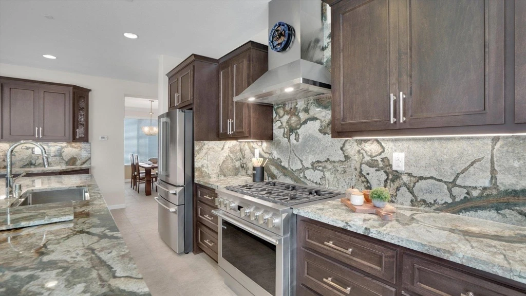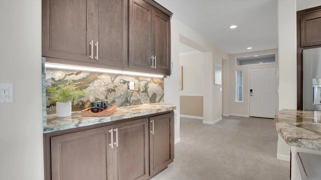 Experience the best of the Trilogy resort lifestyle in a beautifully upgraded home that is truly ready to enjoy. This turn-key home has been thoughtfully upgraded with a fully remodeled kitchen, showcasing HIGHLY upgraded finishes and porcelain tile in all main living areas. Brazilian granite countertops, custom cabinets with inlays, top-of-the-line appliances, Ruvati workstation and pantry all compliment this incredibly refreshed home. The interior paint feels light and airy throughout. Designer blinds and shutters add style, personality, and functionality - all windows have been replaced in the home. A gas fireplace creates a warm, inviting living space ideal for comfortable living on cold winter days. There is a perfect niche for your furniture or treasures next to the fireplace. Step outside to a generously sized, private lot—a rare find—where you can unwind in your own hot tub and enjoy peaceful outdoor living with privacy. Meticulously maintained and move-in ready, this home offers the perfect blend of sophistication, comfort and style. Enjoy all the Trilogy amenities, clubhouses, vibrant social calendar, pools, restaurant, cafe, spa, gym, courts and golf course.