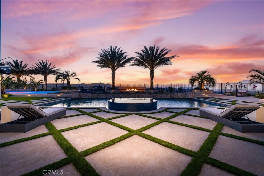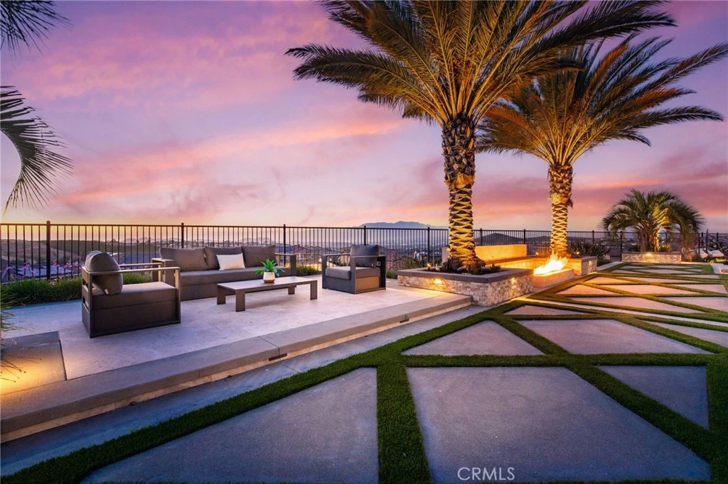 Commanding an unrivaled vantage point atop the most prestigious corner lot in Tramonte at Citrus Heights with breathtaking panoramic mountain and city light views, this masterfully remodeled estate represents the pinnacle of Riverside luxury, offering a level of sophistication and custom detail that far surpasses any neighborhood benchmark in the region. The interior is an architectural triumph, featuring intricate 8” crown moldings, 7” baseboards, luxury vinyl plank flooring, and custom shutters throughout. The chef’s kitchen is a culinary masterpiece anchored by a 48” Sub-Zero refrigerator, Bertazzoni triple-oven range, dual Bosch dishwashers, and a massive seamless waterfall quartz island. Entertainment is redefined in the professional theater room with a 135” screen and 7.1 surround sound, while the formal living areas showcase stunning coffered ceilings and decorative paneling. A fully self-contained multi-generational suite offers a private entrance, separate 1-car garage, kitchenette, separate washer/dryer, and a marble-clad spa bathroom. The primary sanctuary is a true retreat, boasting a flush-mounted 85” TV integrated into a shiplap feature wall, a sleek electric fireplace, a boutique-style custom closet, and a private balcony overlooking the city lights. Outside, a five-star private resort awaits: a 45-foot pool with an infinity-edge spa, an outdoor entertainment pavilion with a full kitchen and fireplace, a regulation-size basketball court, RV gate, pet friendly turf area, and an expansive multi-hole putting green, all framed by 11 mature date palms and custom travertine hardscape. Modern essentials include a 4-car tandem epoxy-finished garage with EV charging, a 10-camera Eufy security system, Govee architectural lighting, and a QuietCool whole-house fan. Located adjacent to a quiet playground and elevated above the neighbors, this one-of-a-kind estate offers an unparalleled lifestyle of privacy and opulence.